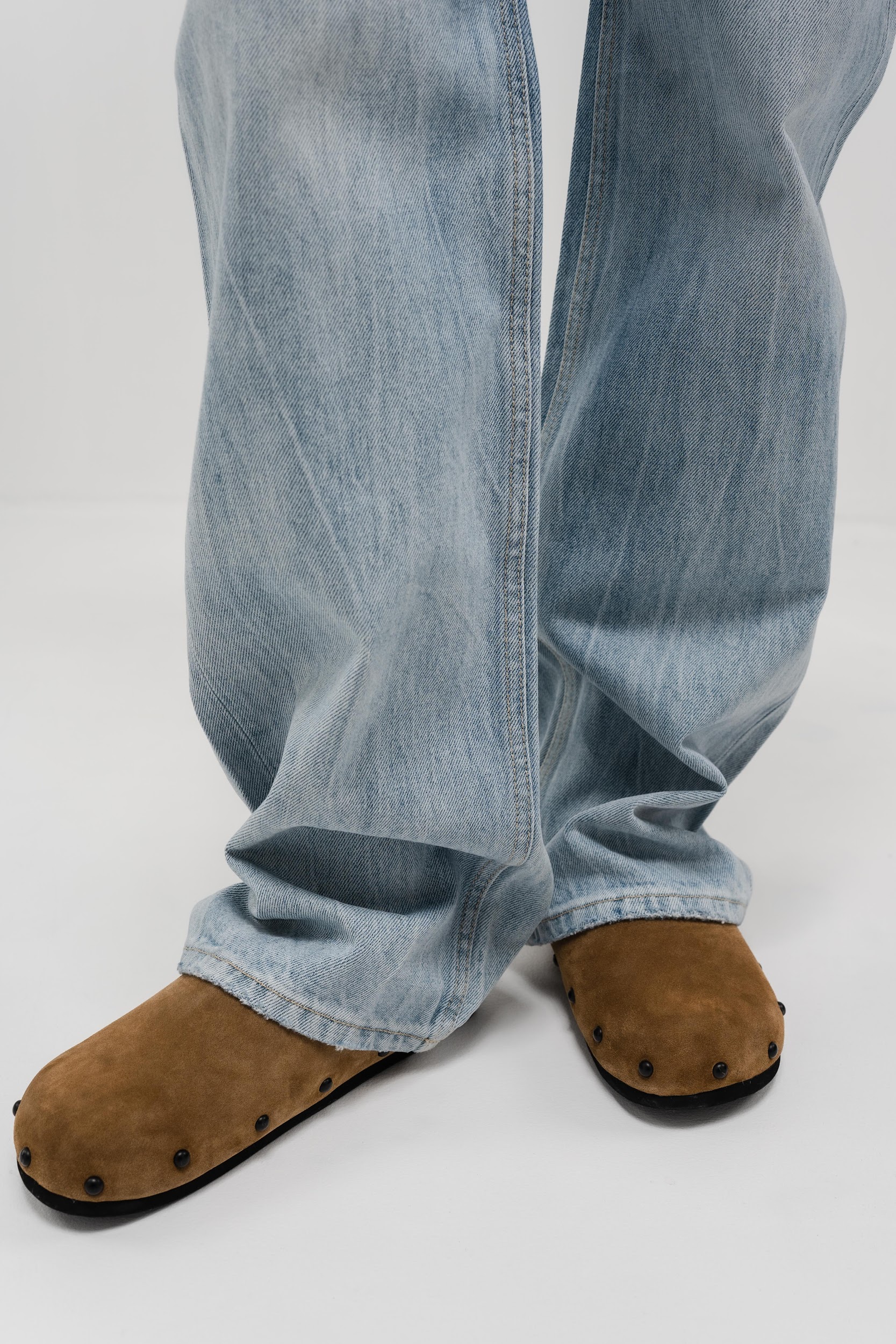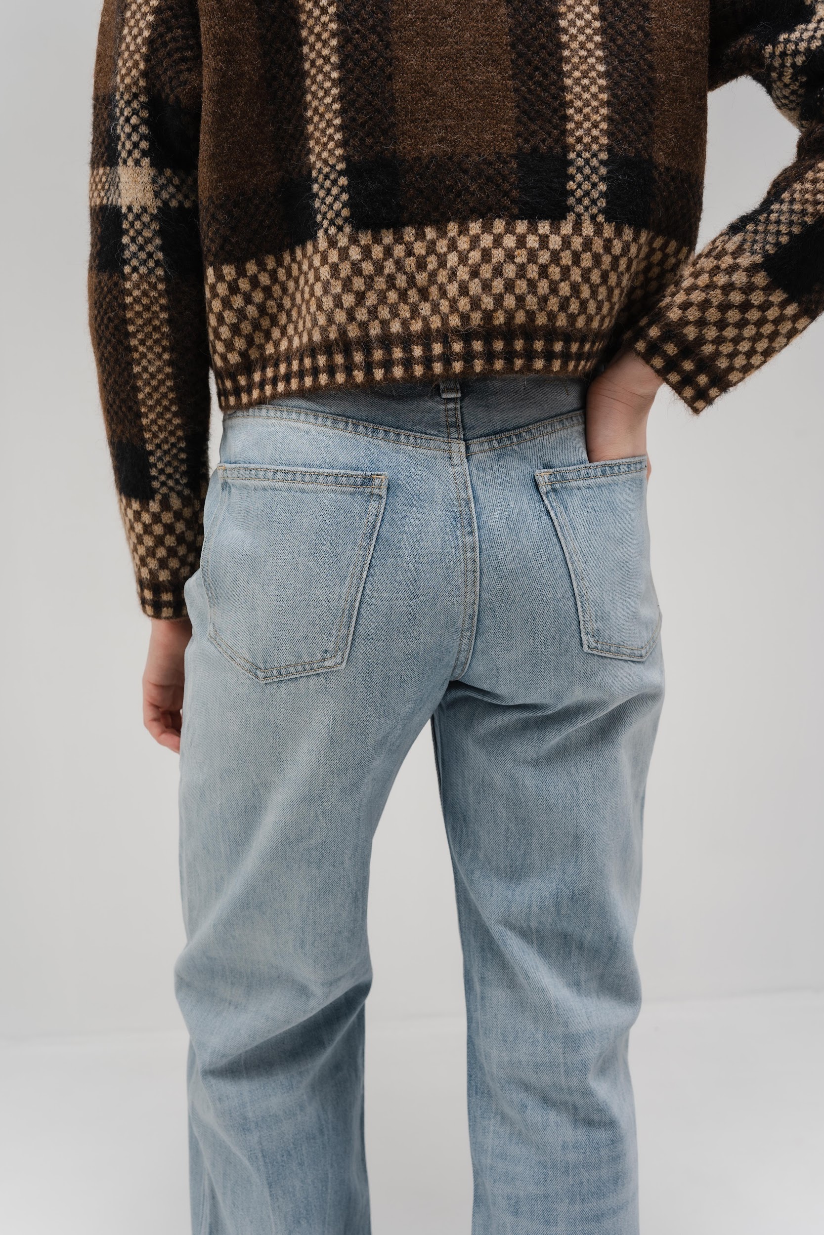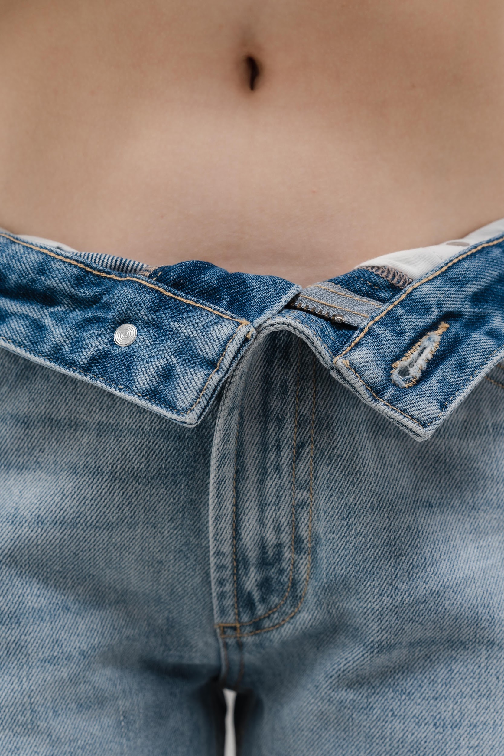Джинсы длинные, свободного кроя со средней посадкой.  Пять карманов. Застежка на молнию и металлическую пуговицу.