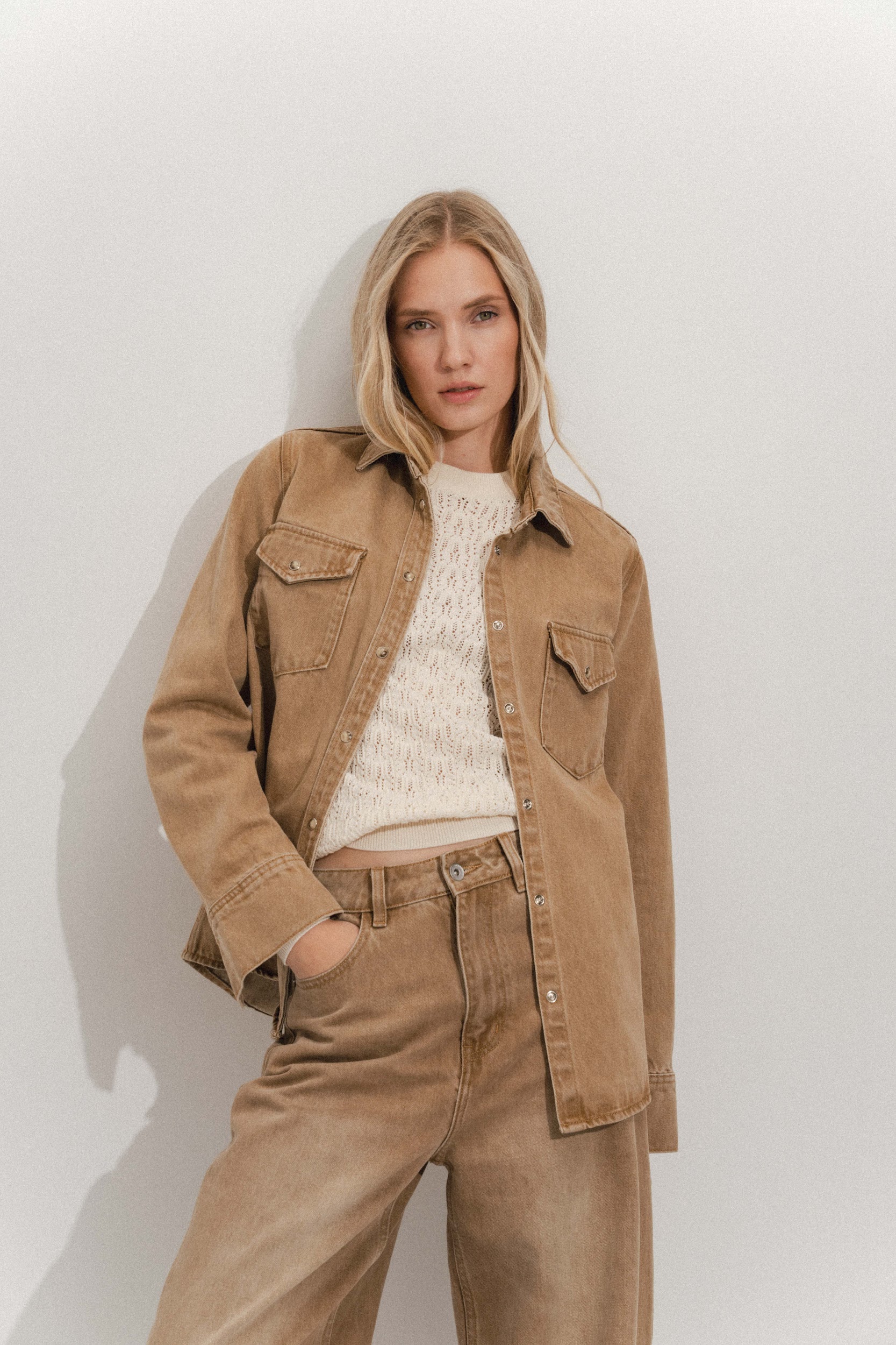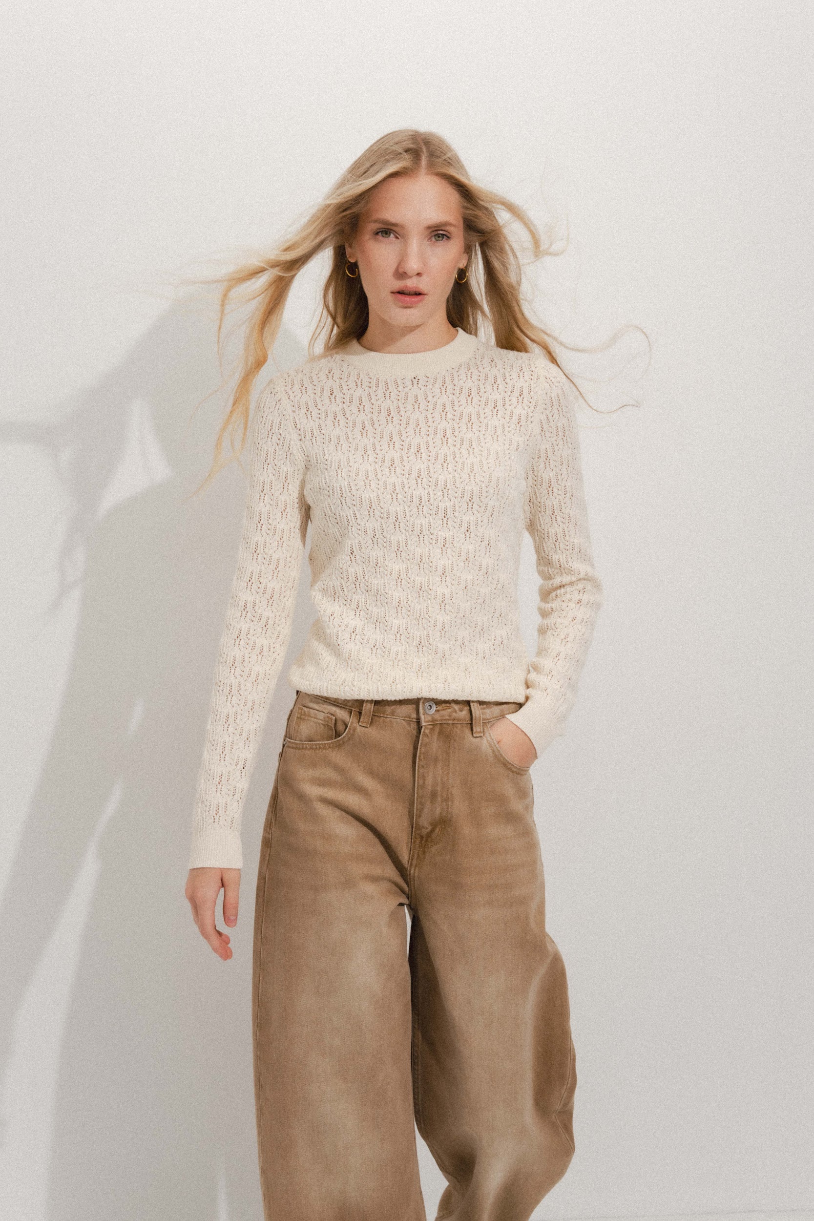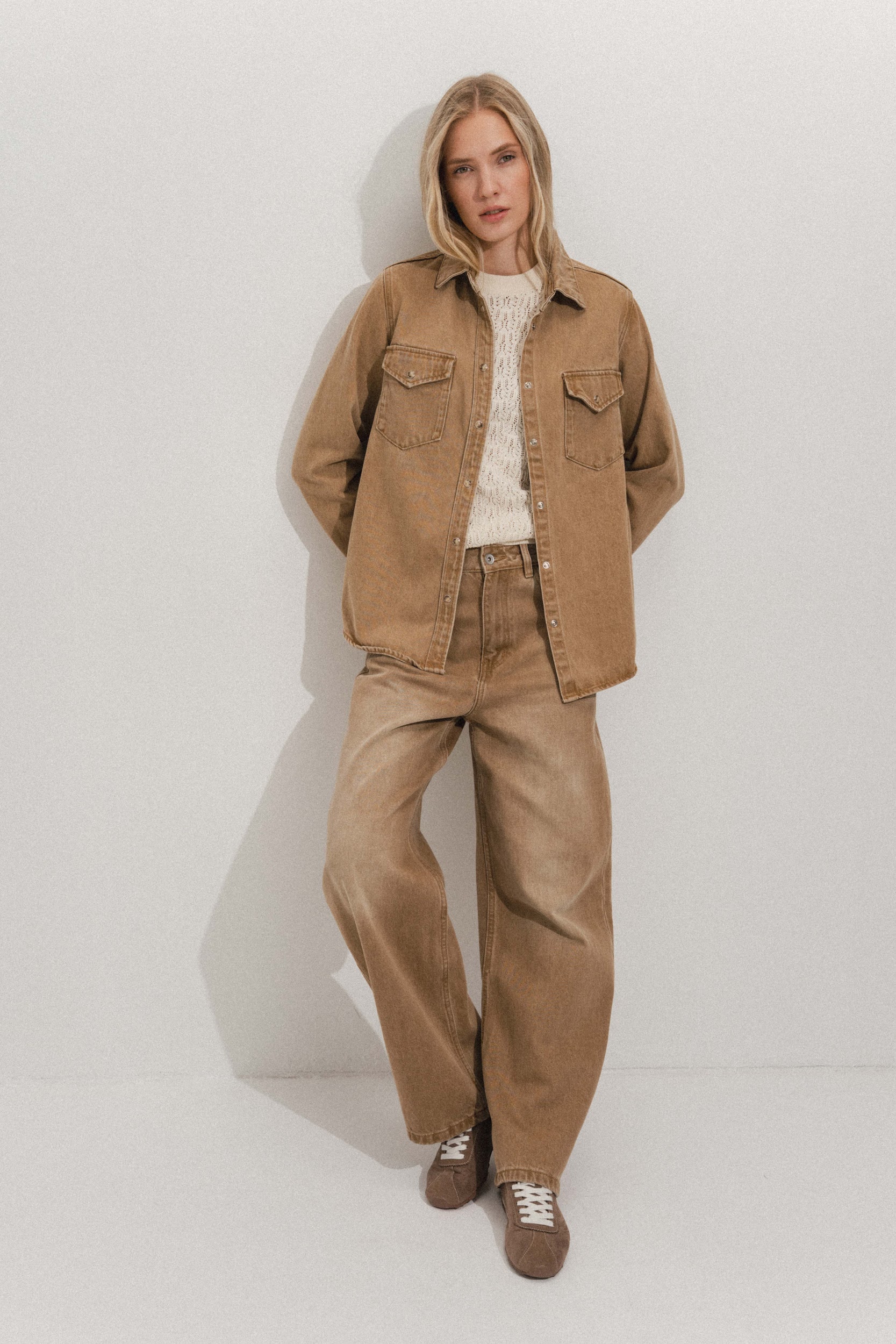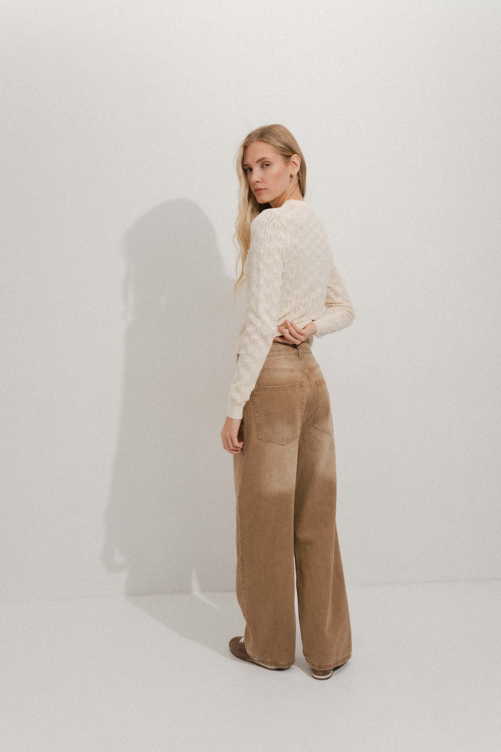 Джинсы свободного кроя со средней посадкой. Эффект потертости. Пять карманов. Застежка на молнию и металлическую пуговицу