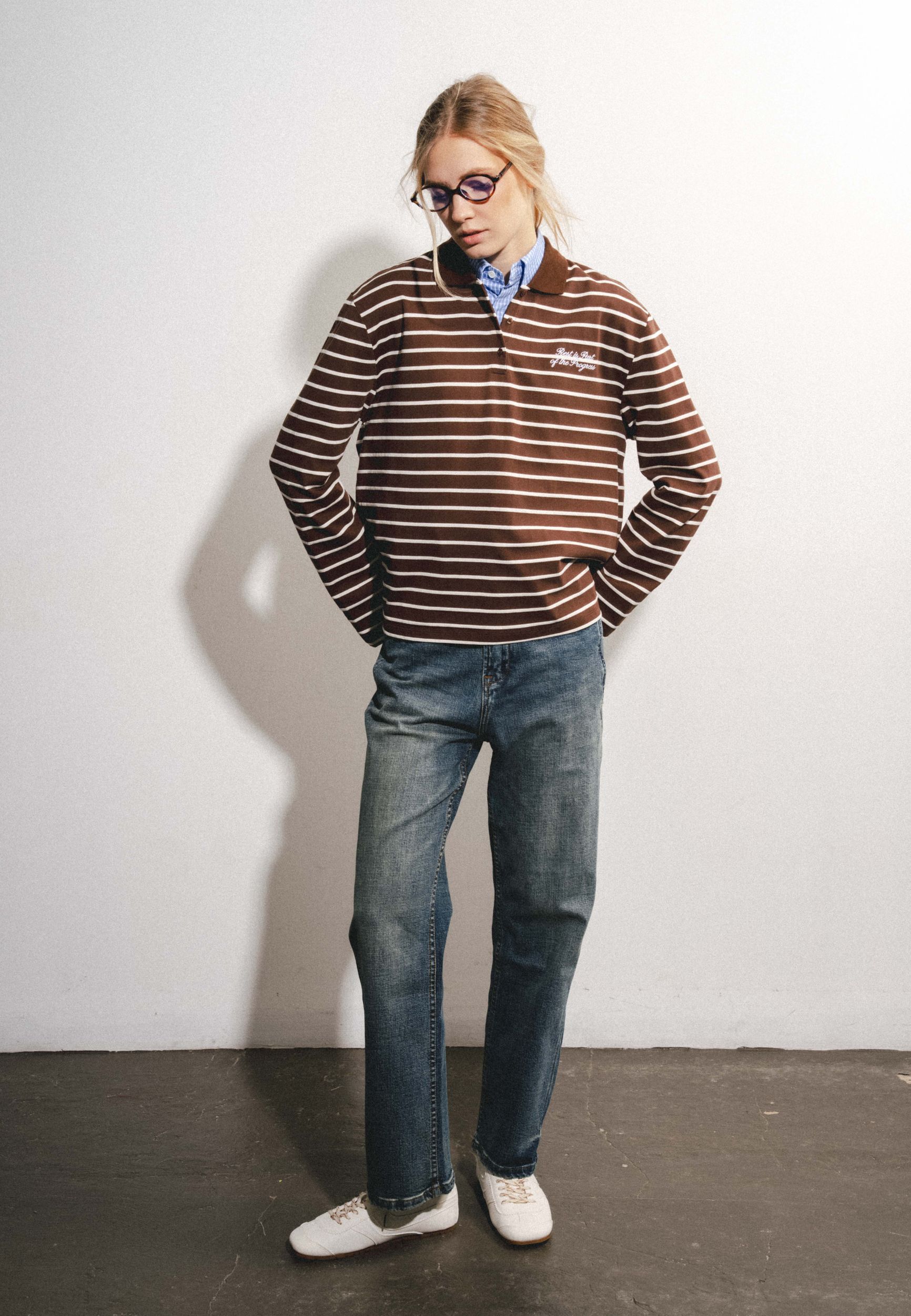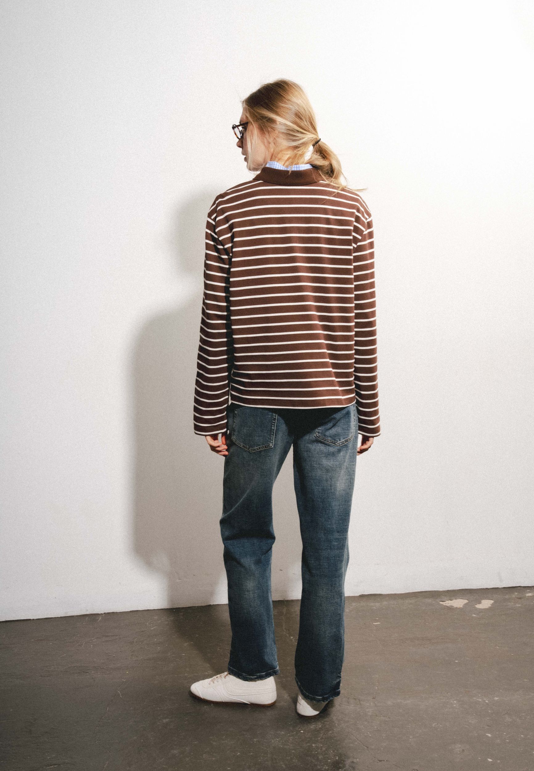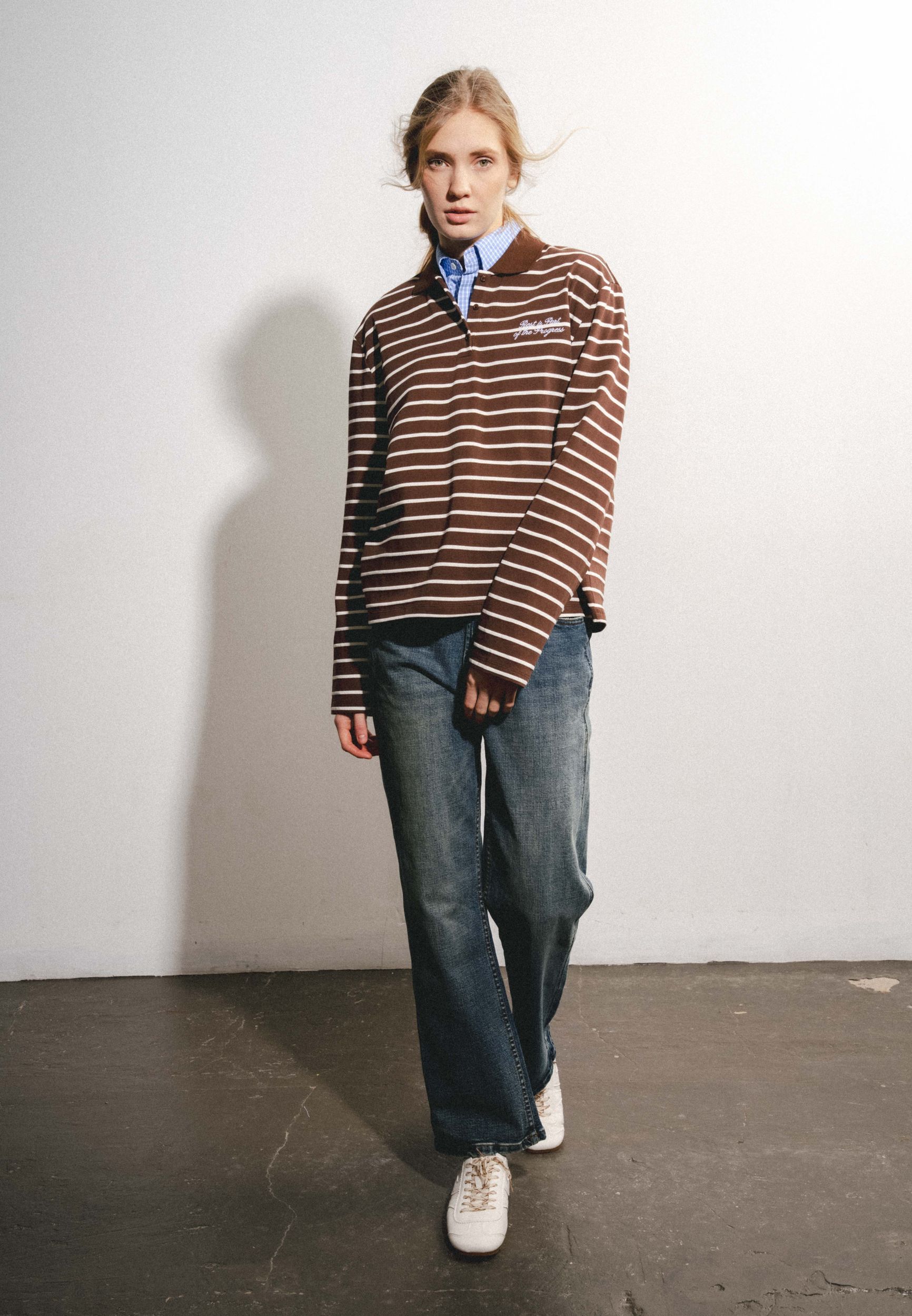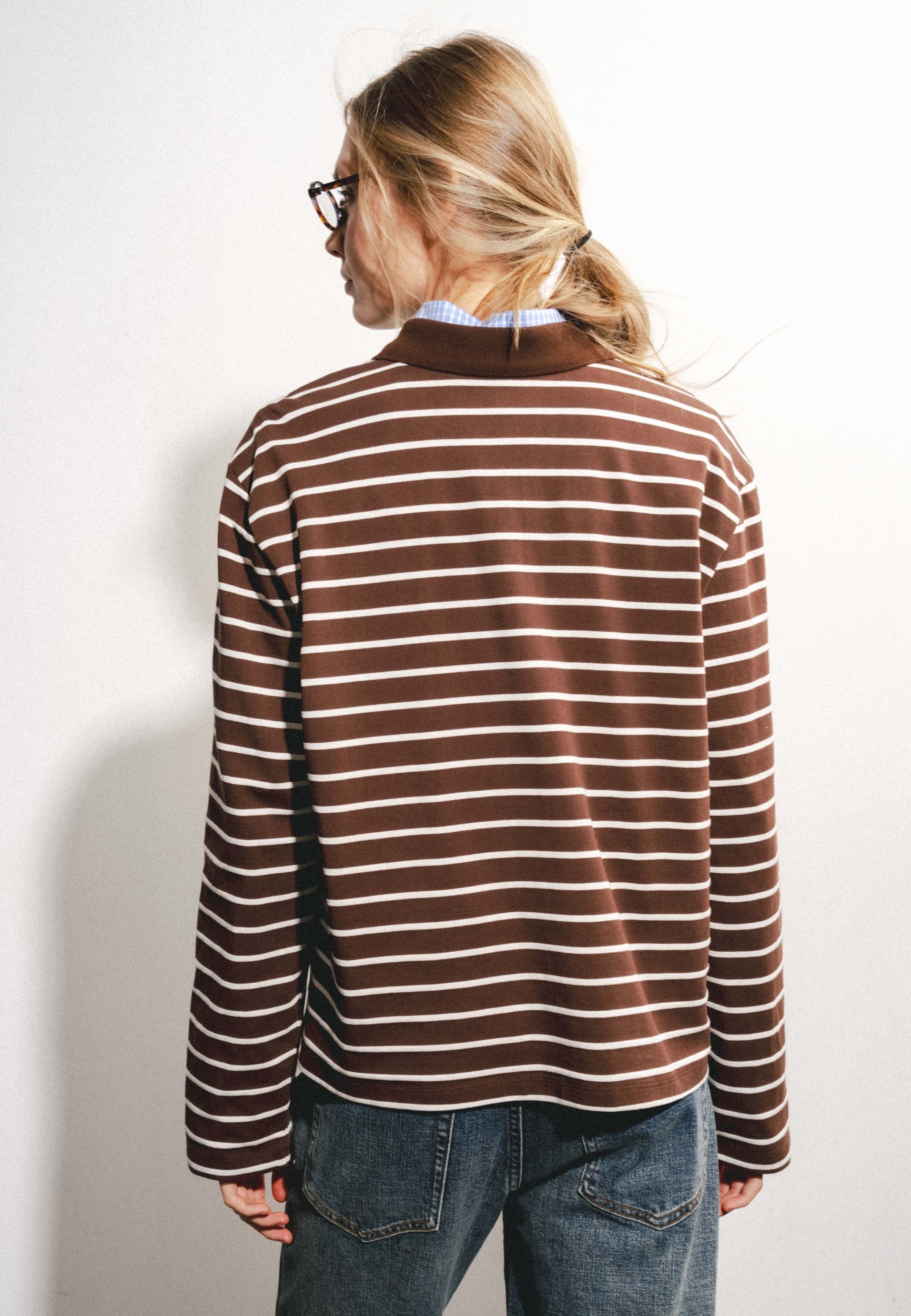 Поло с длинным рукавом из 100% хлопка в полоску. Отложной воротник на пуговицах. Дизайн с вышивкой.