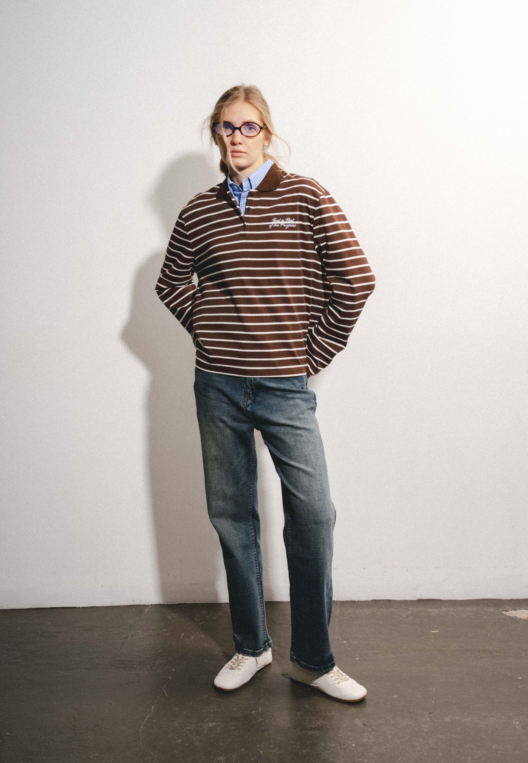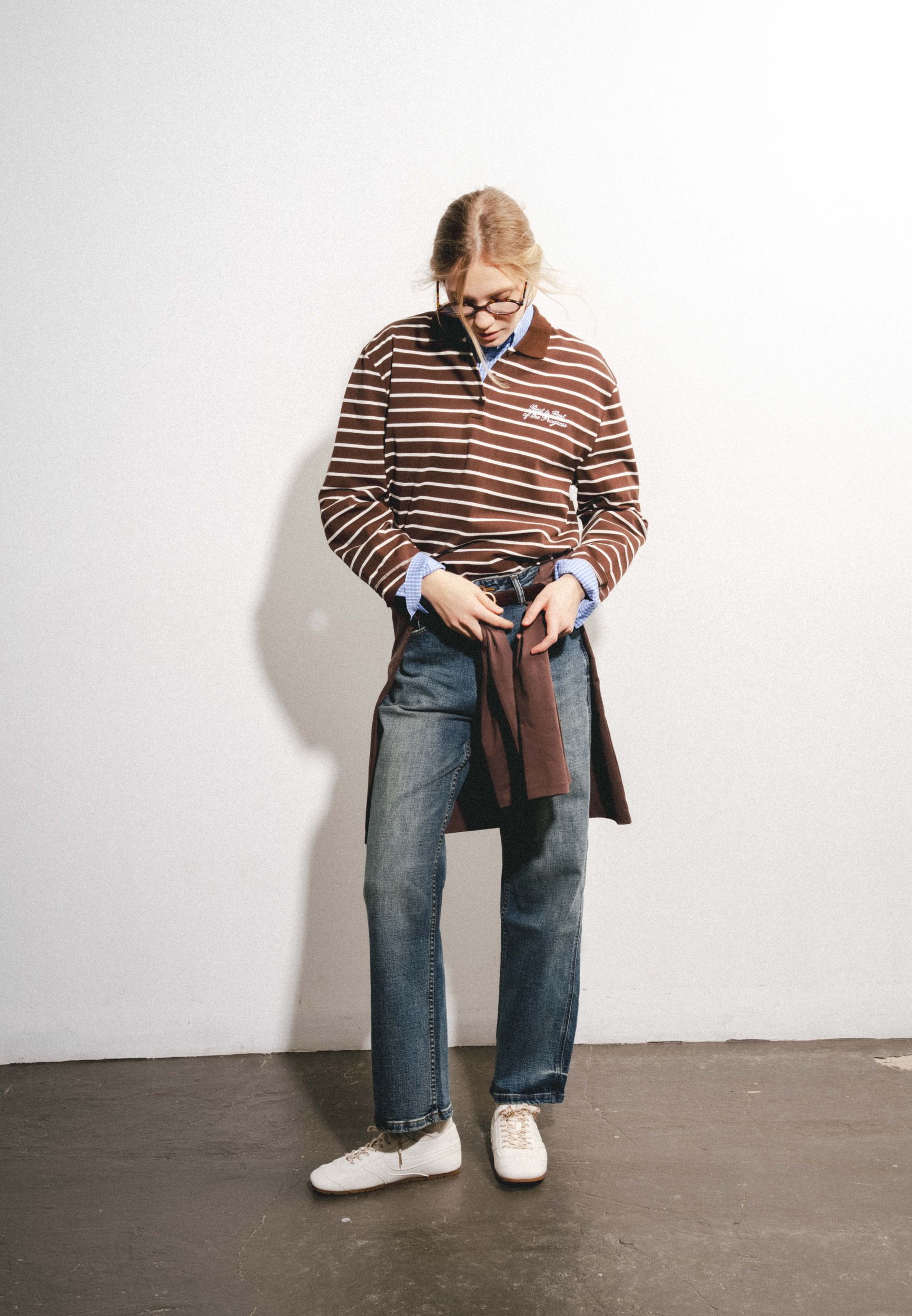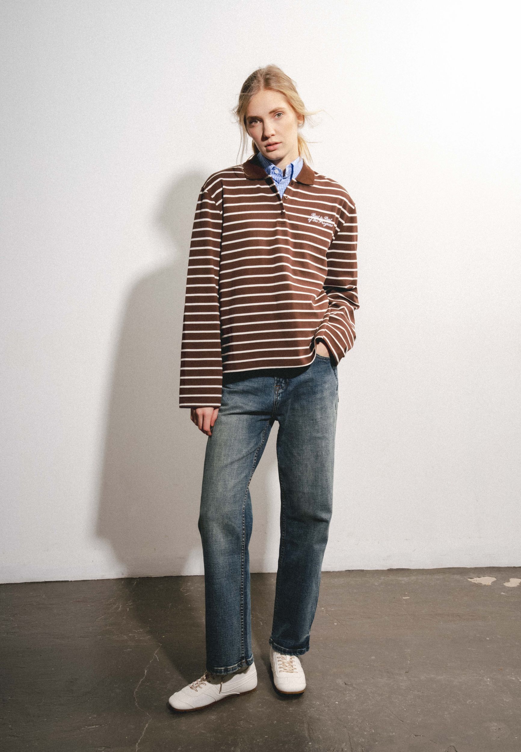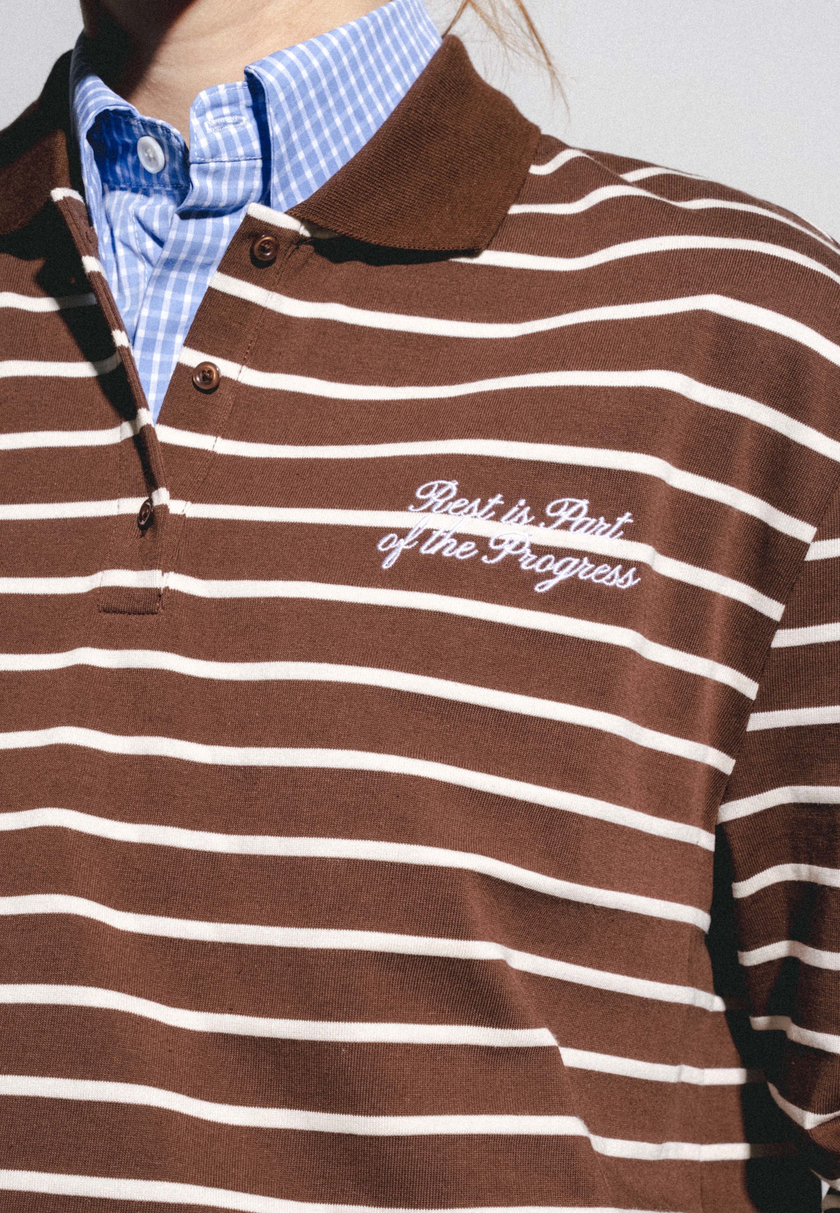 Поло с длинным рукавом из 100% хлопка в полоску. Отложной воротник на пуговицах. Дизайн с вышивкой.