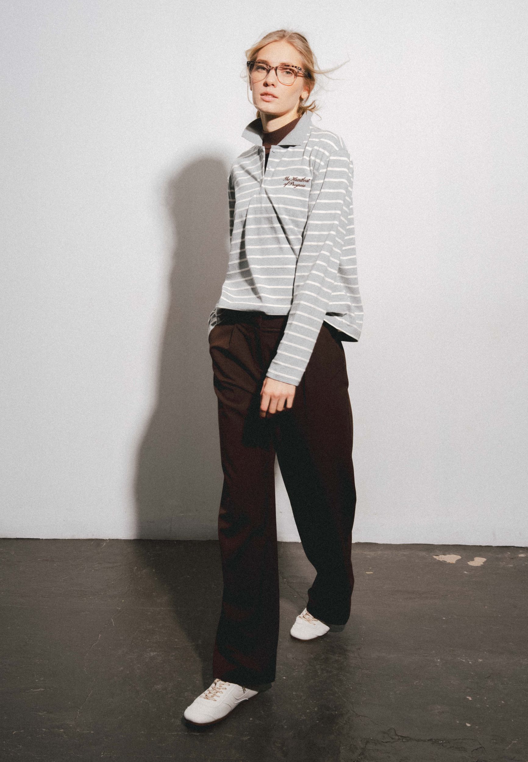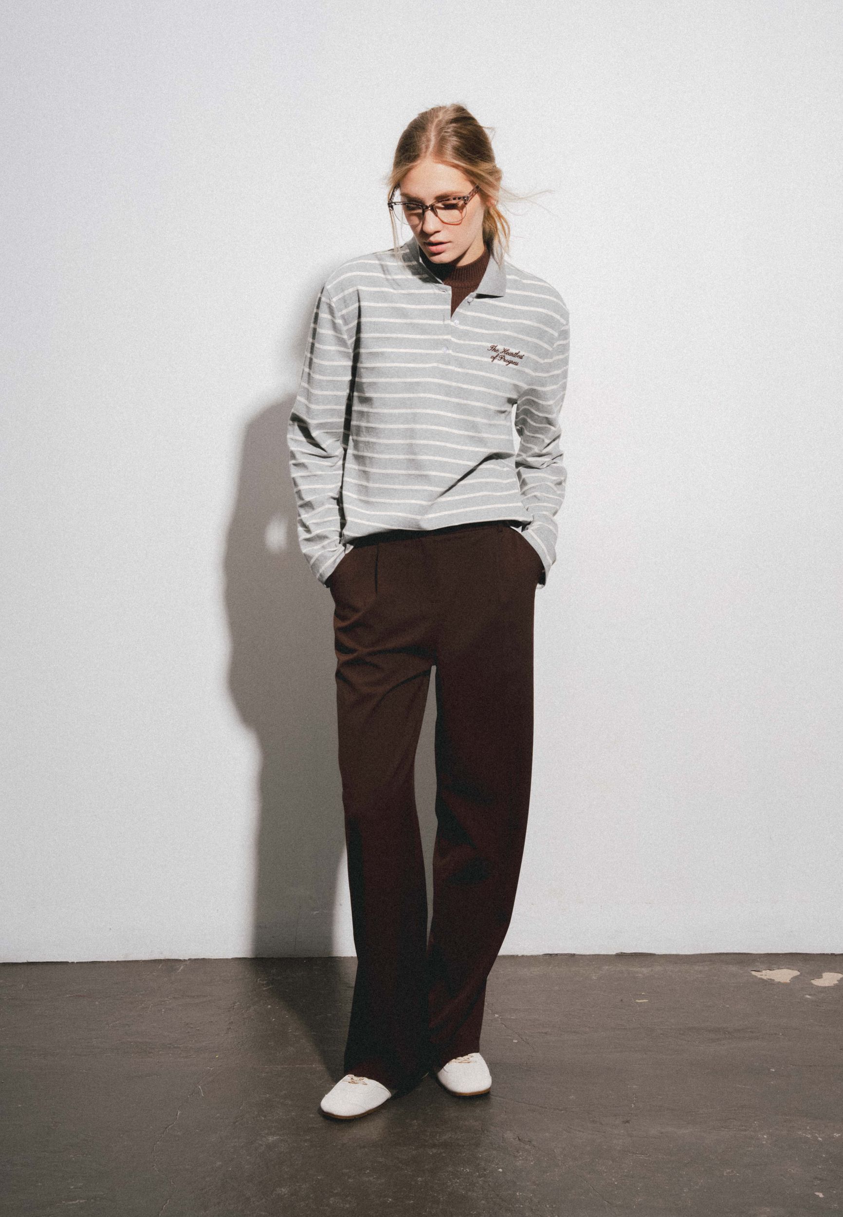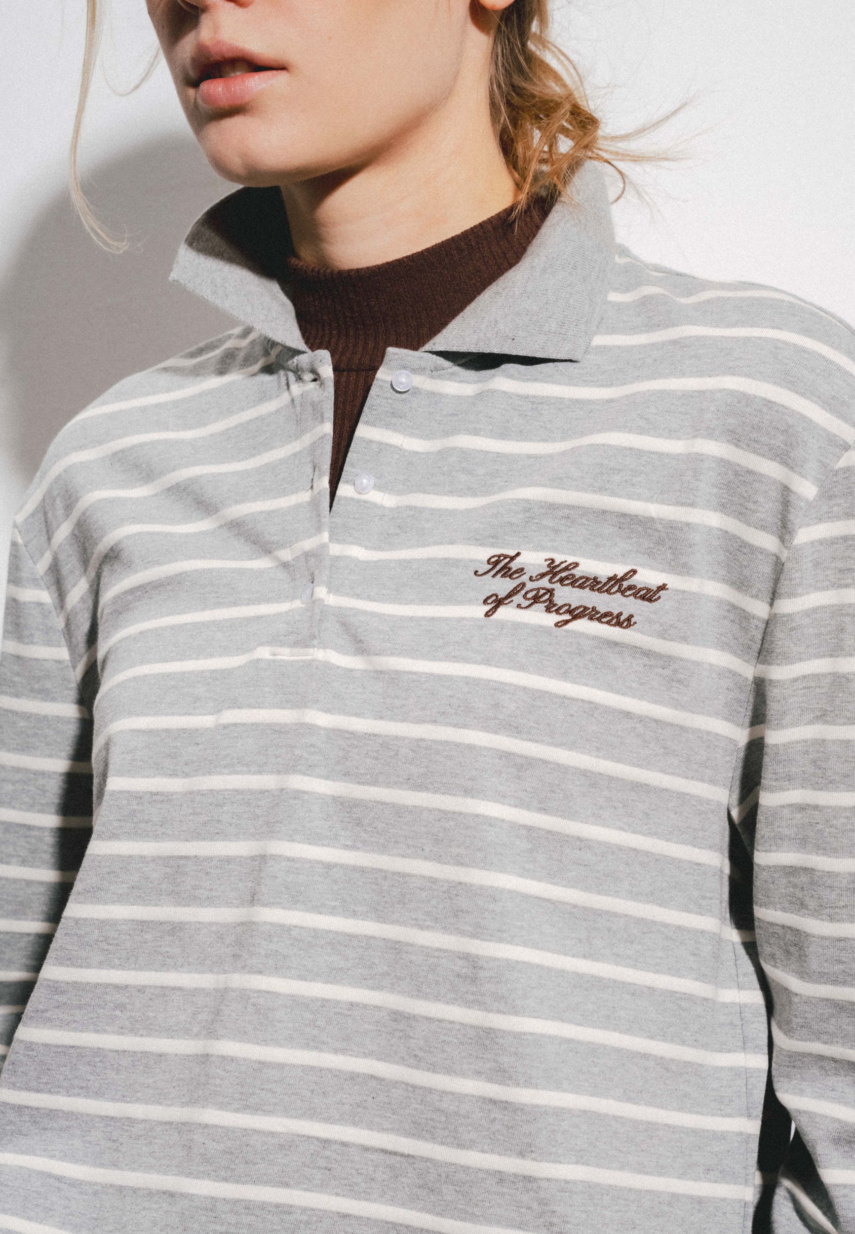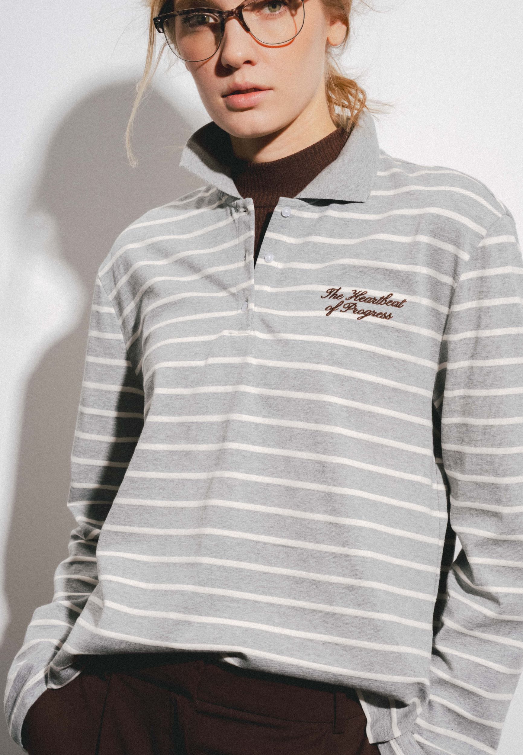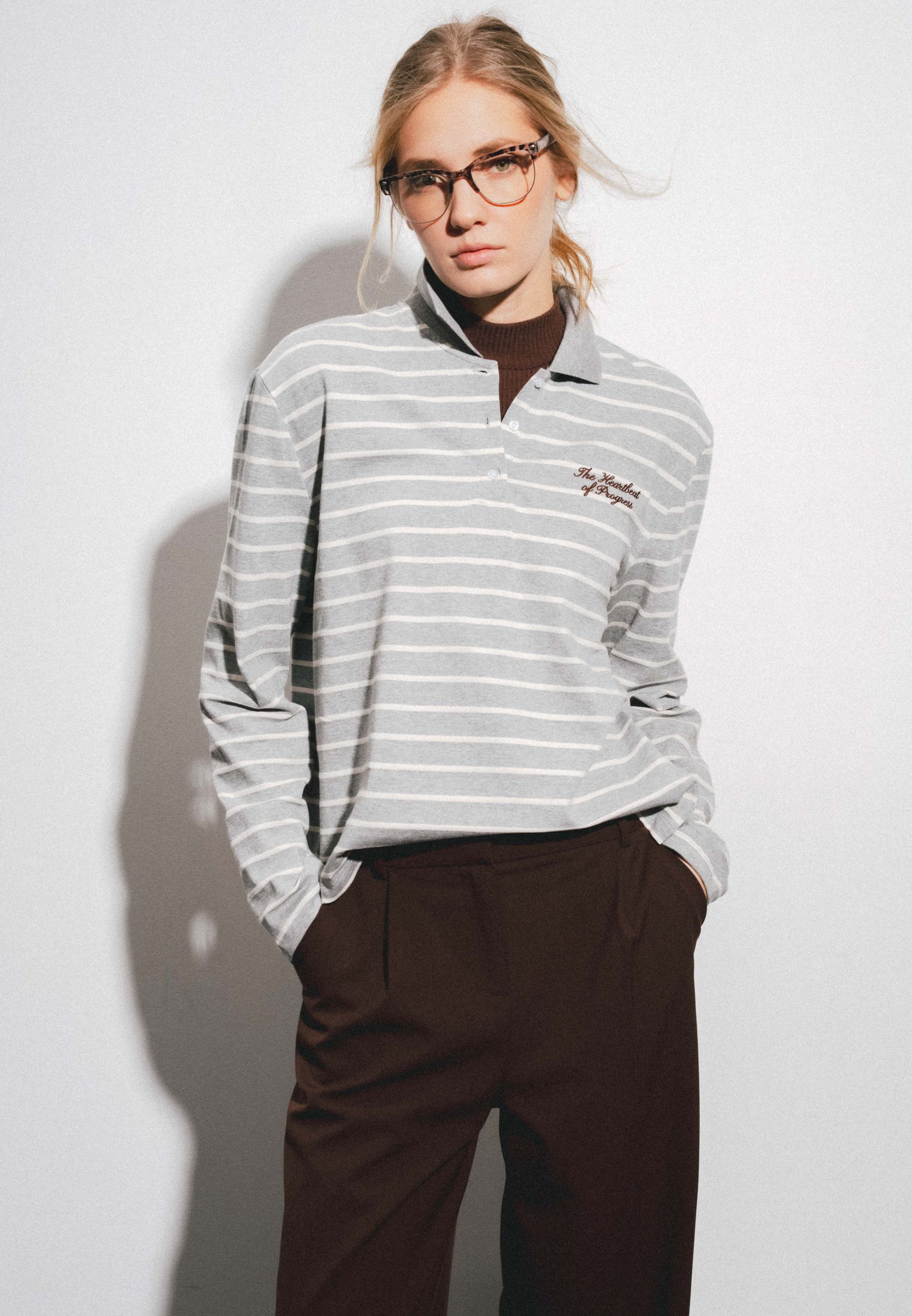 Поло с длинным рукавом из 100% хлопка в полоску. Отложной воротник на пуговицах. Дизайн с вышивкой.