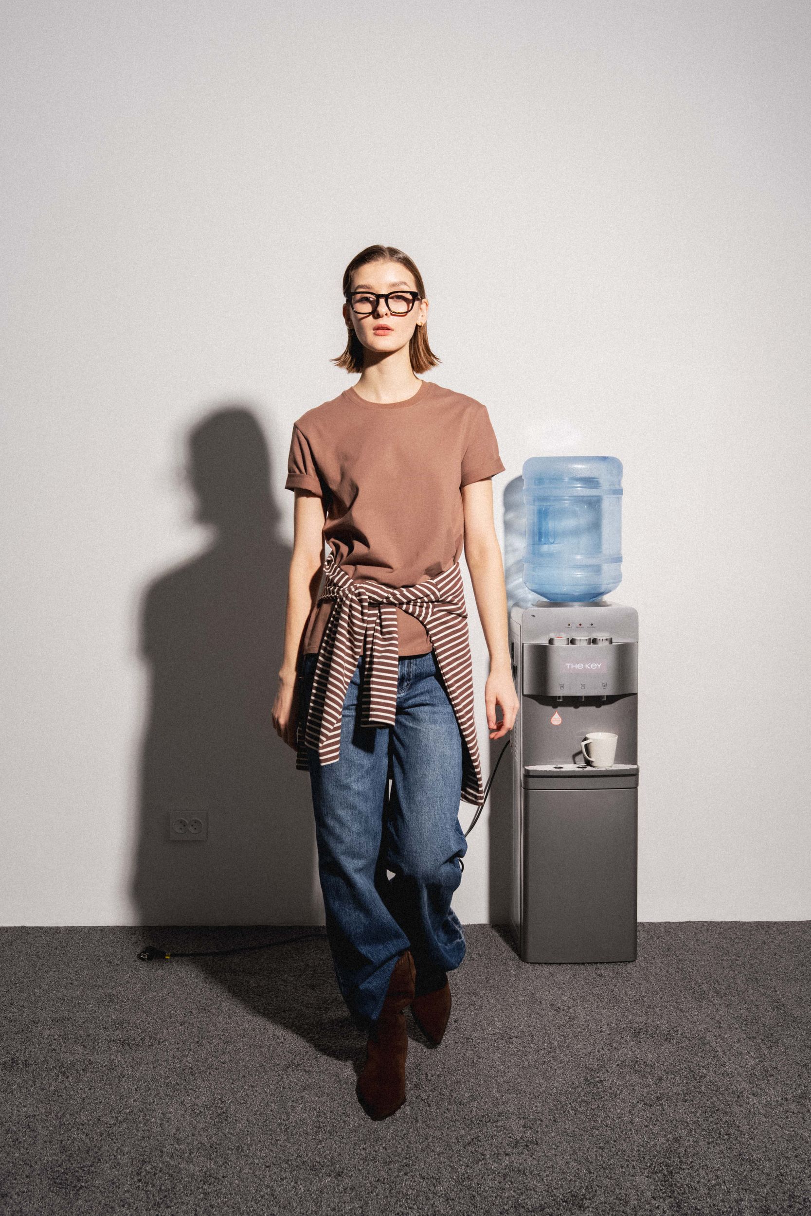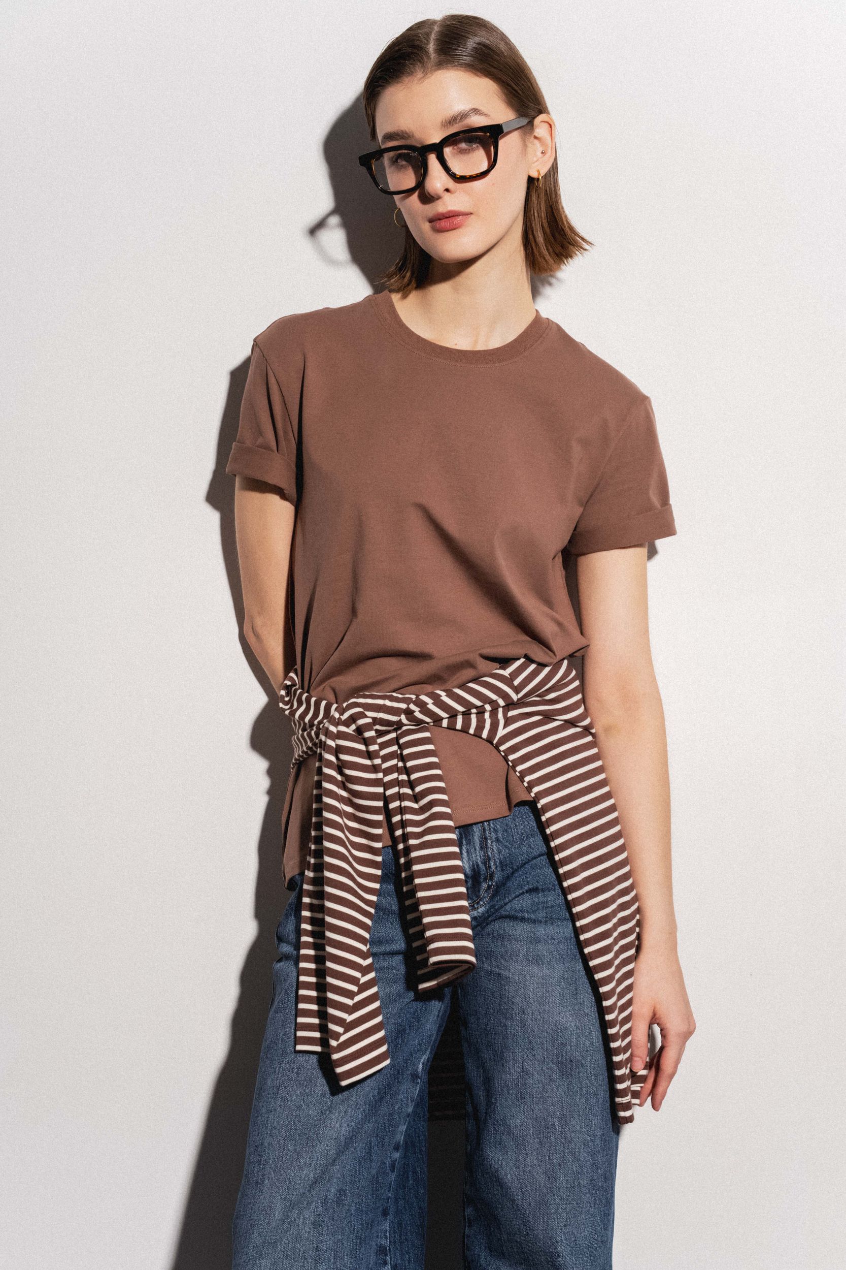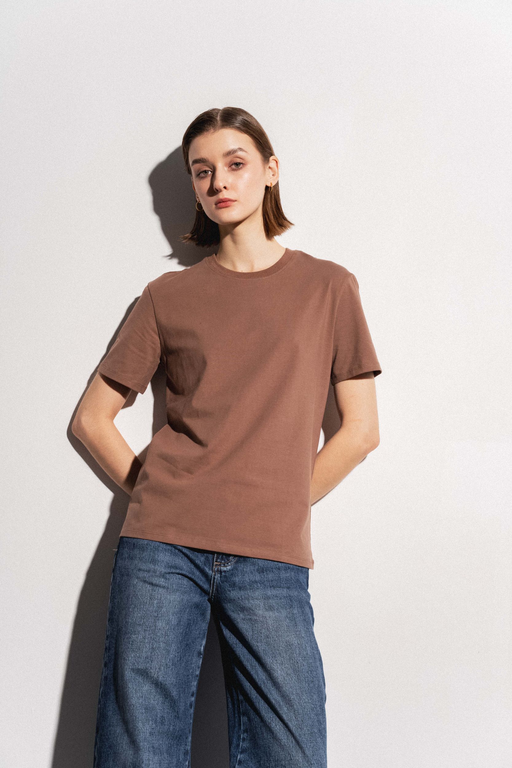Футболка из хлопка прямого силуэта. Круглый вырез. Короткий рукав