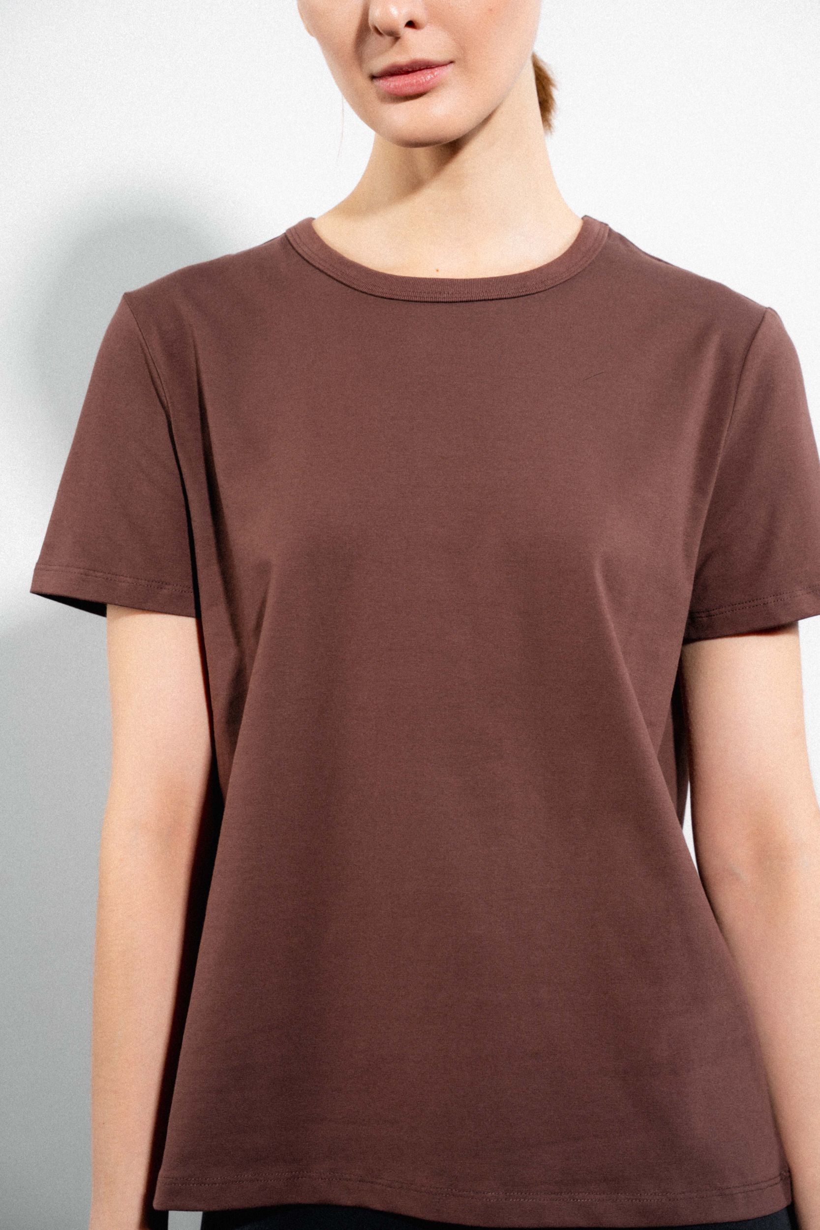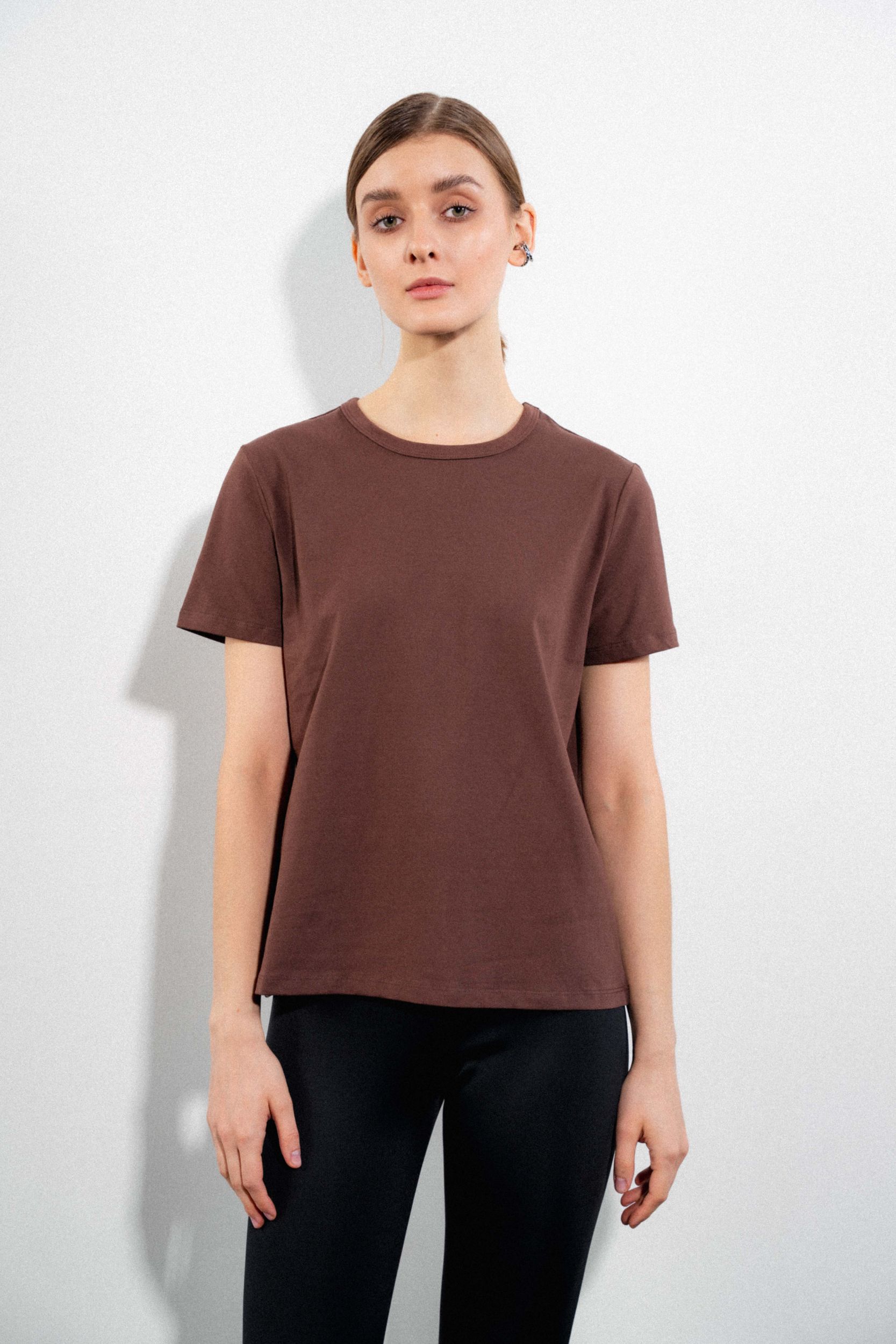 Футболка из хлопка прямого силуэта. Круглый вырез.Короткий рукав