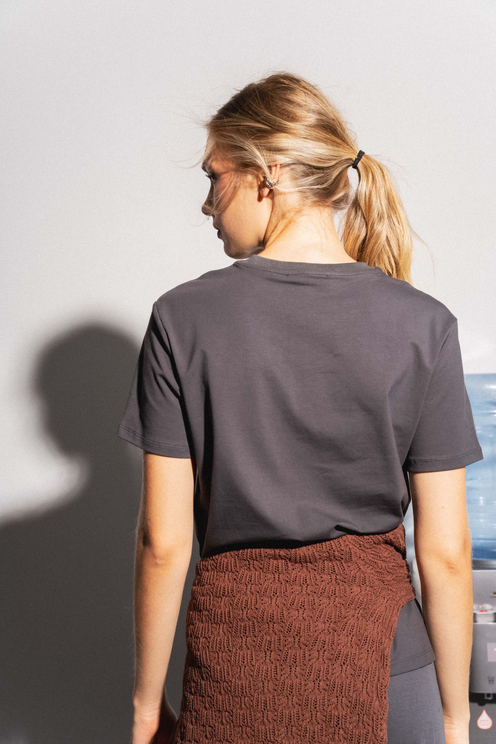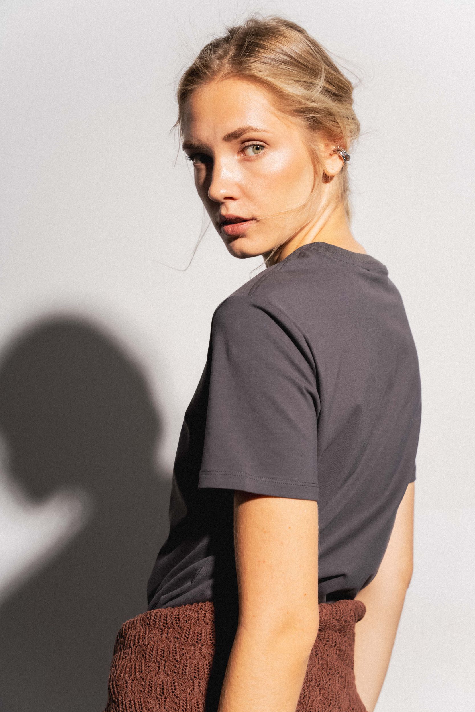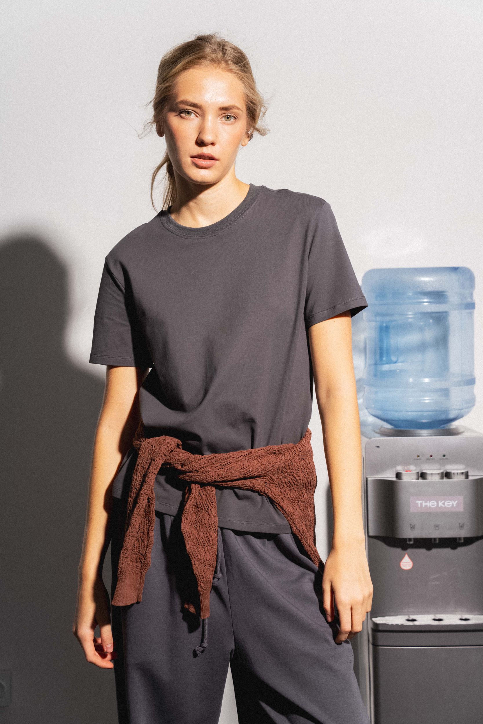 Футболка из хлопка прямого силуэта. Круглый вырез. Короткий рукав