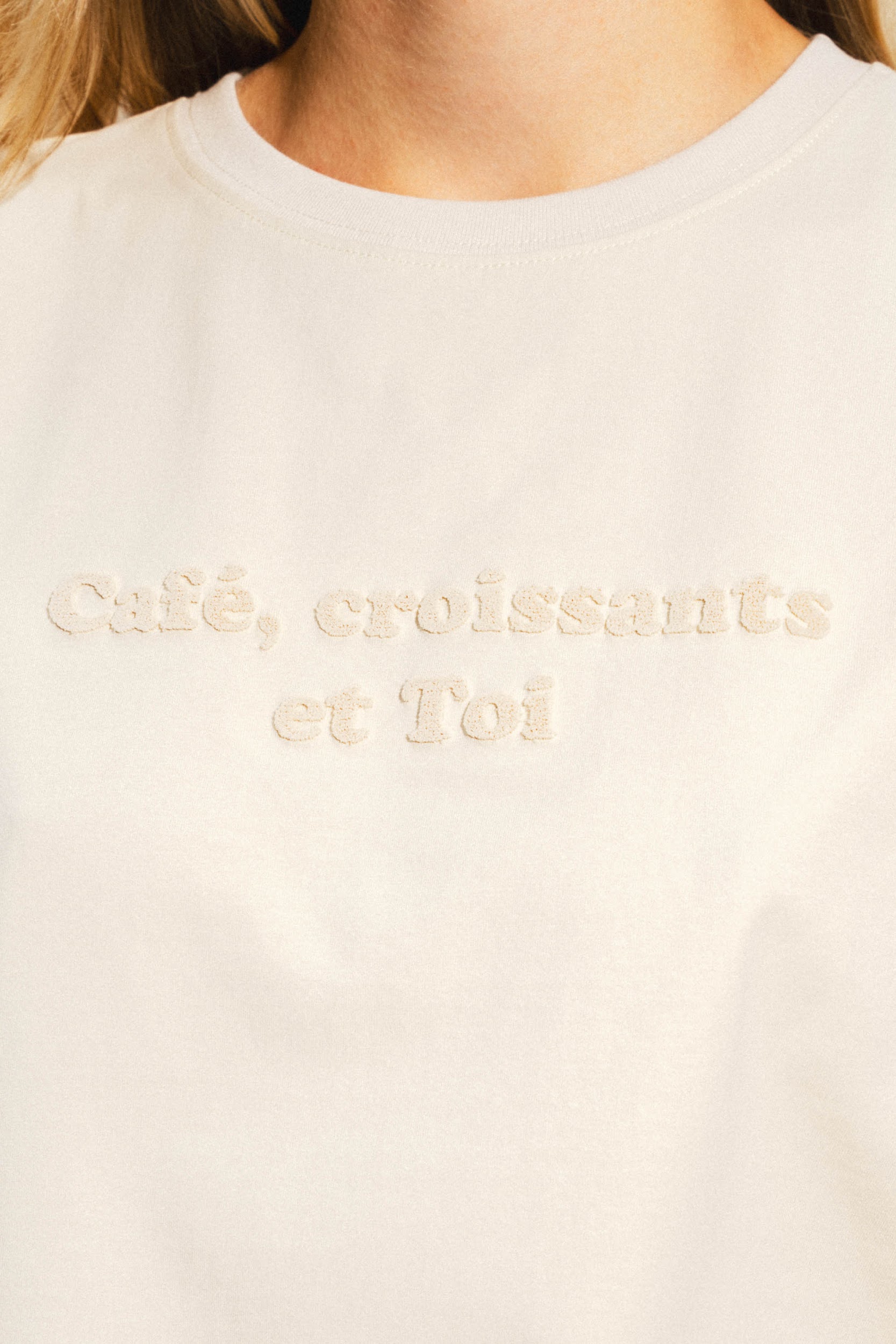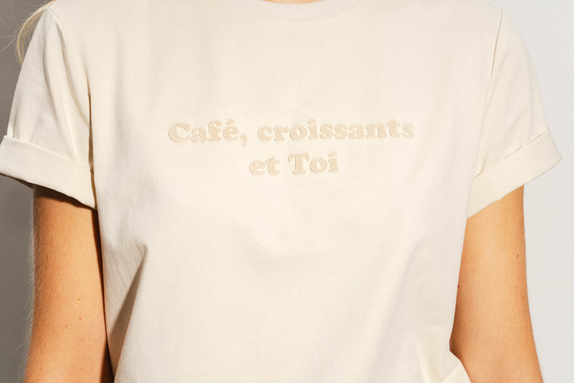 Футболка удлиненная из хлопка прямого силуэта. Круглый вырез. Короткий рукав. Обьемный текстовый принт.