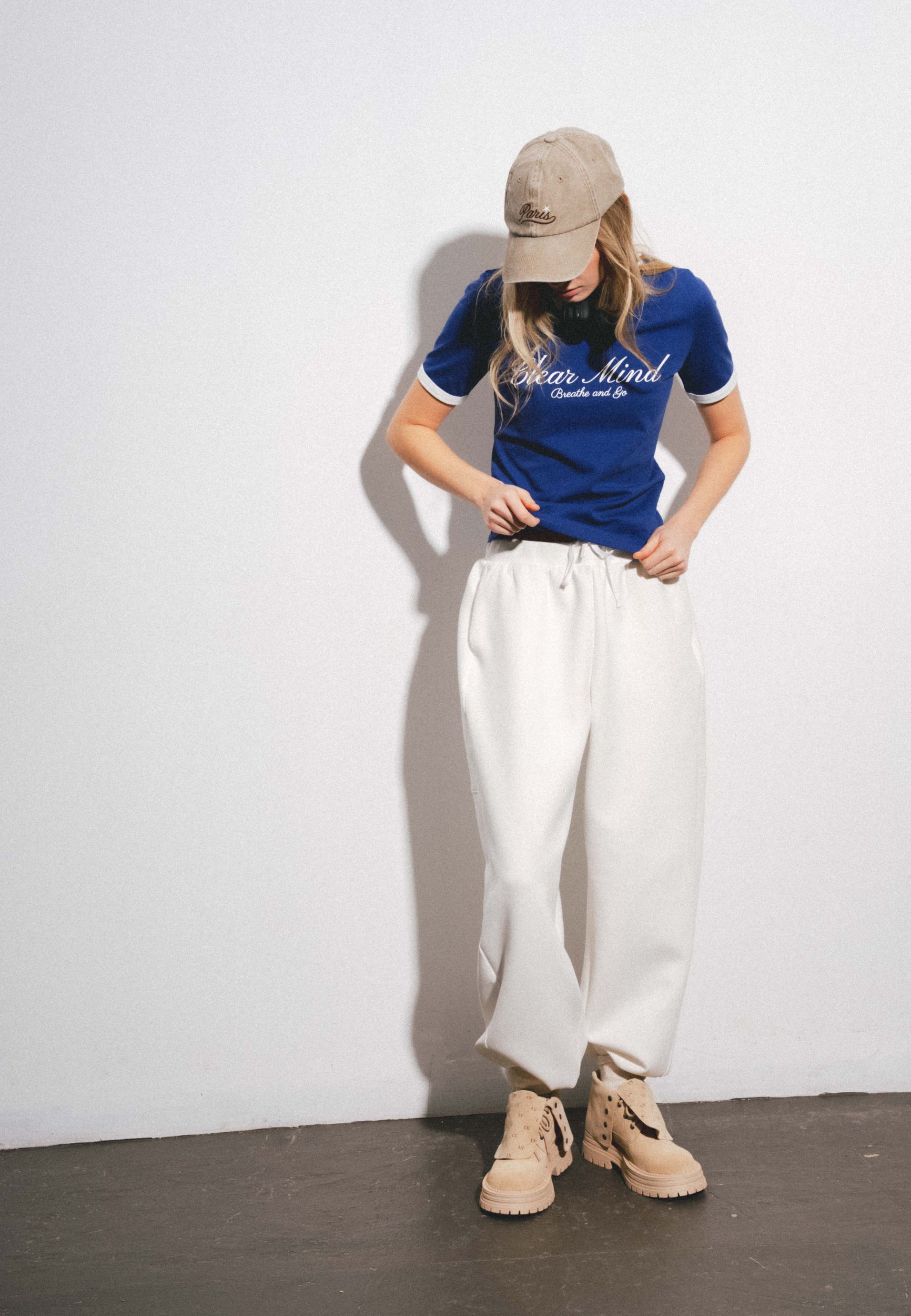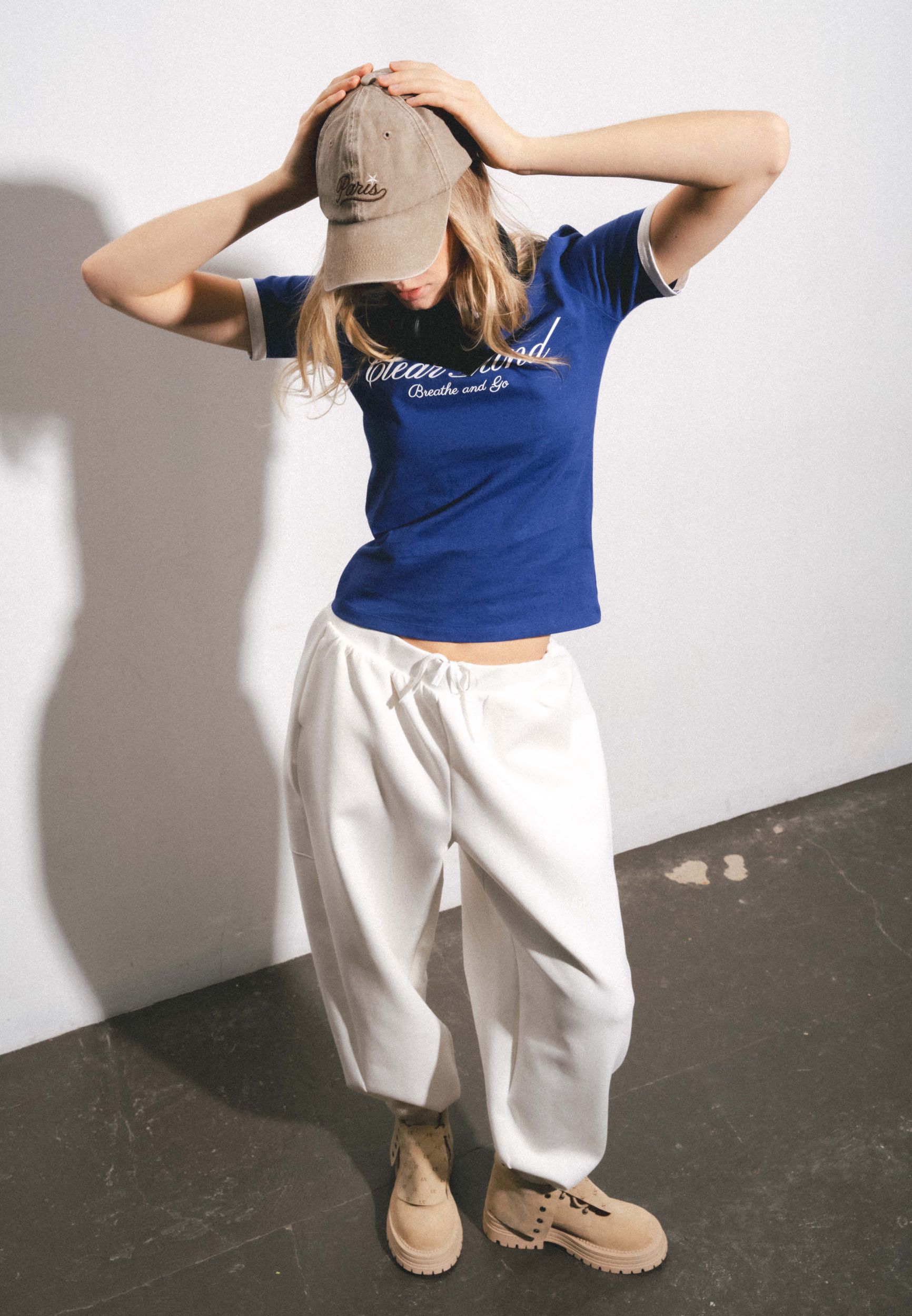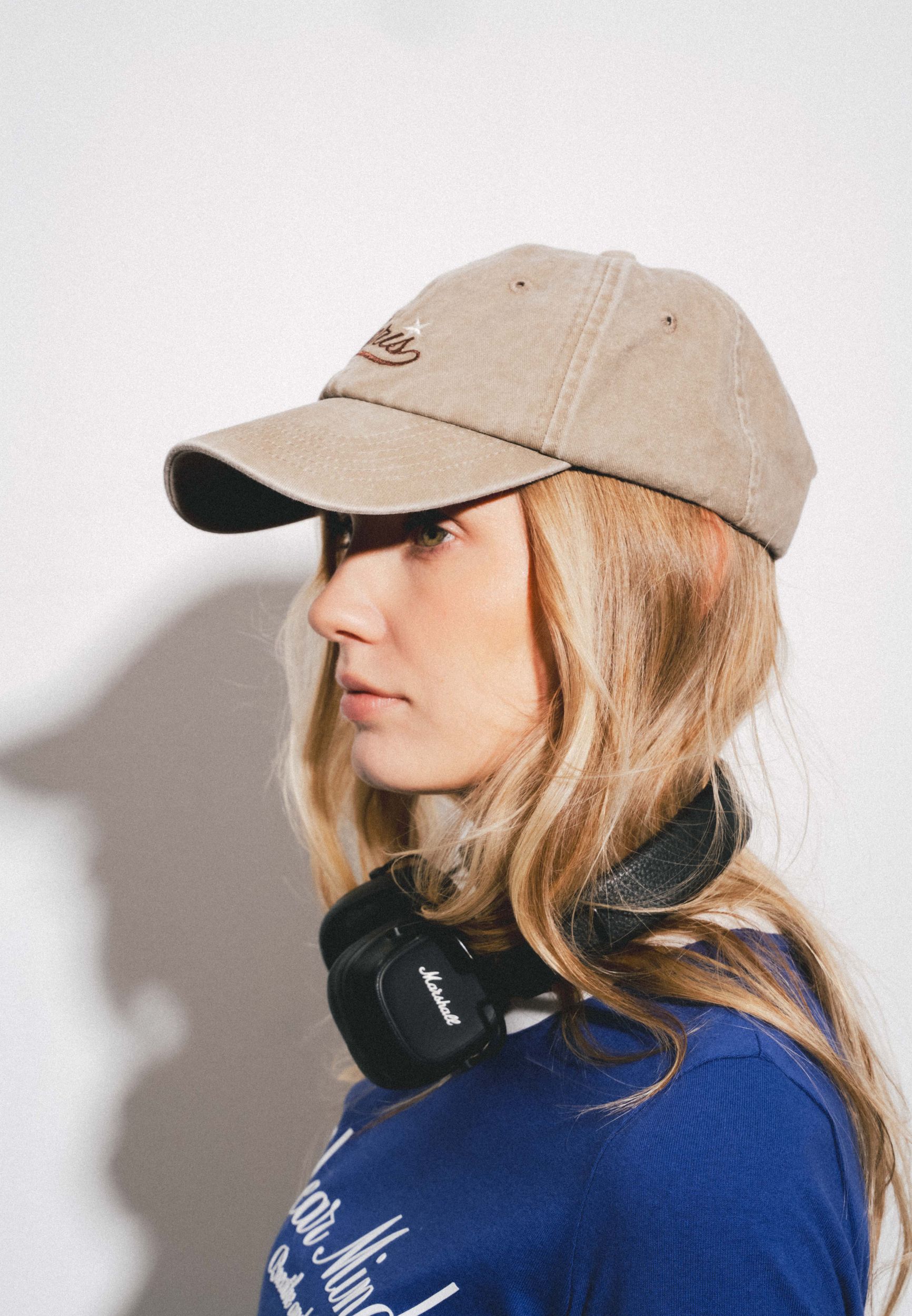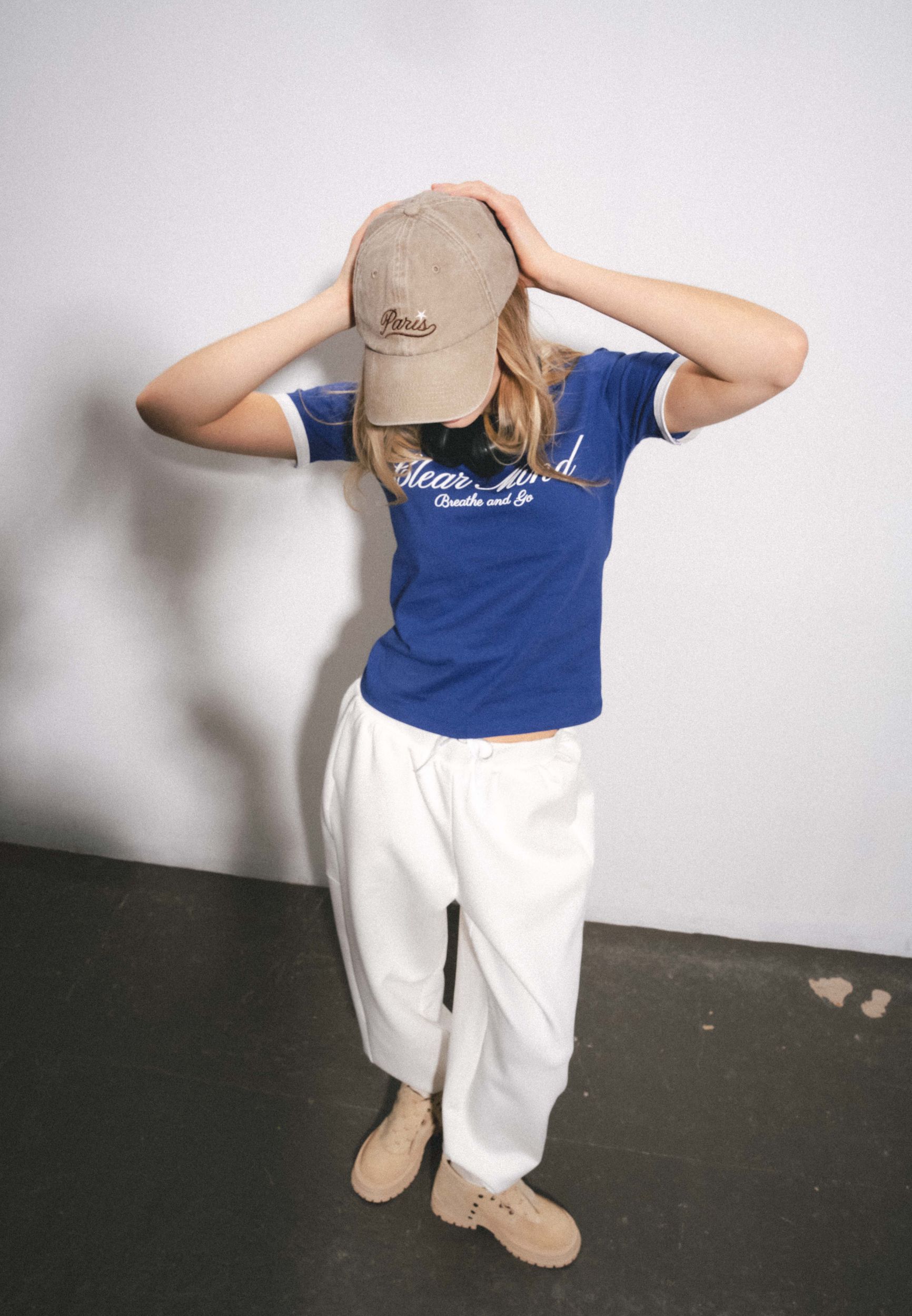 Бейсболка из хлопка с жестким козырьком. Регулируемая застежка. Текстовая вышивка.