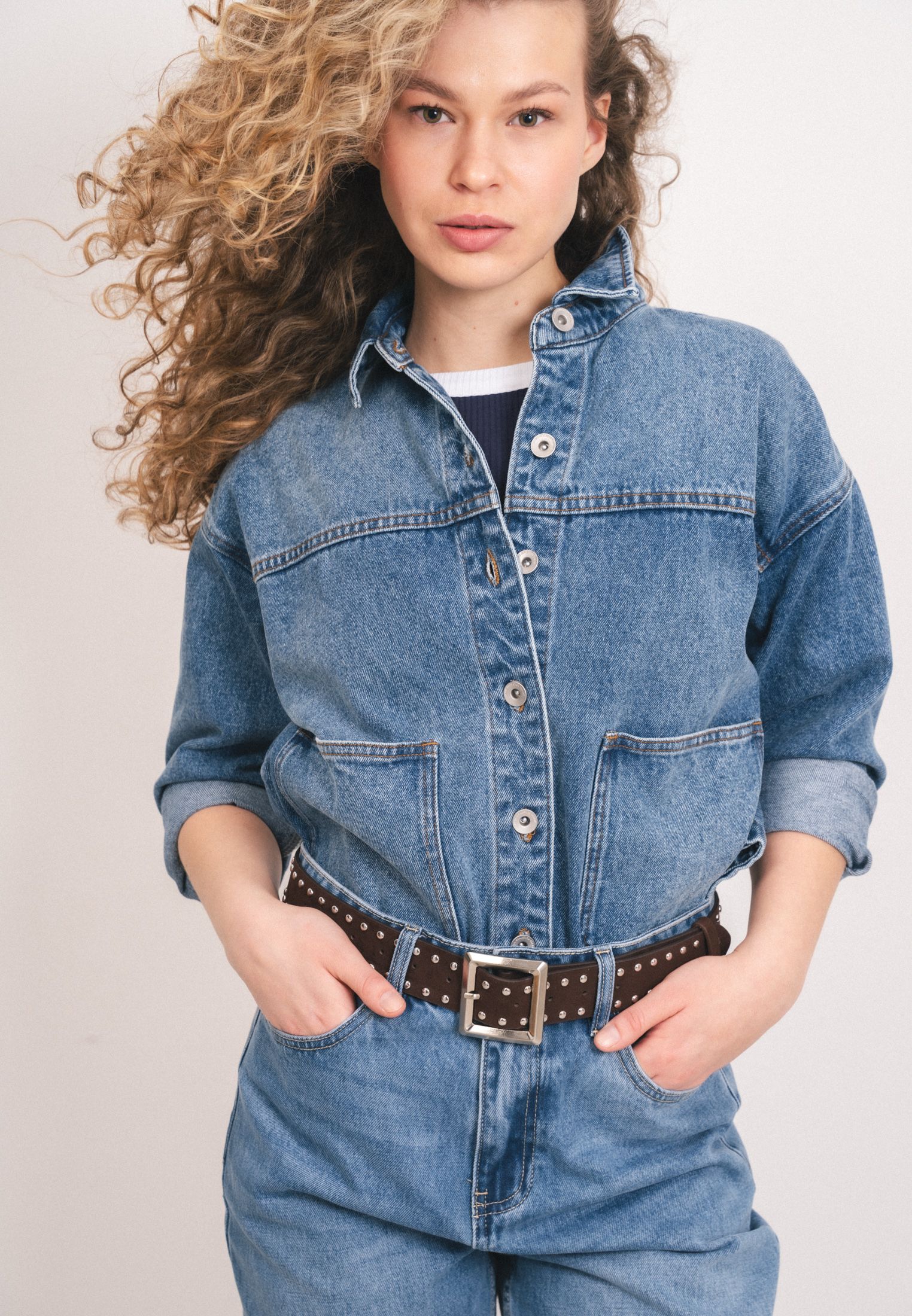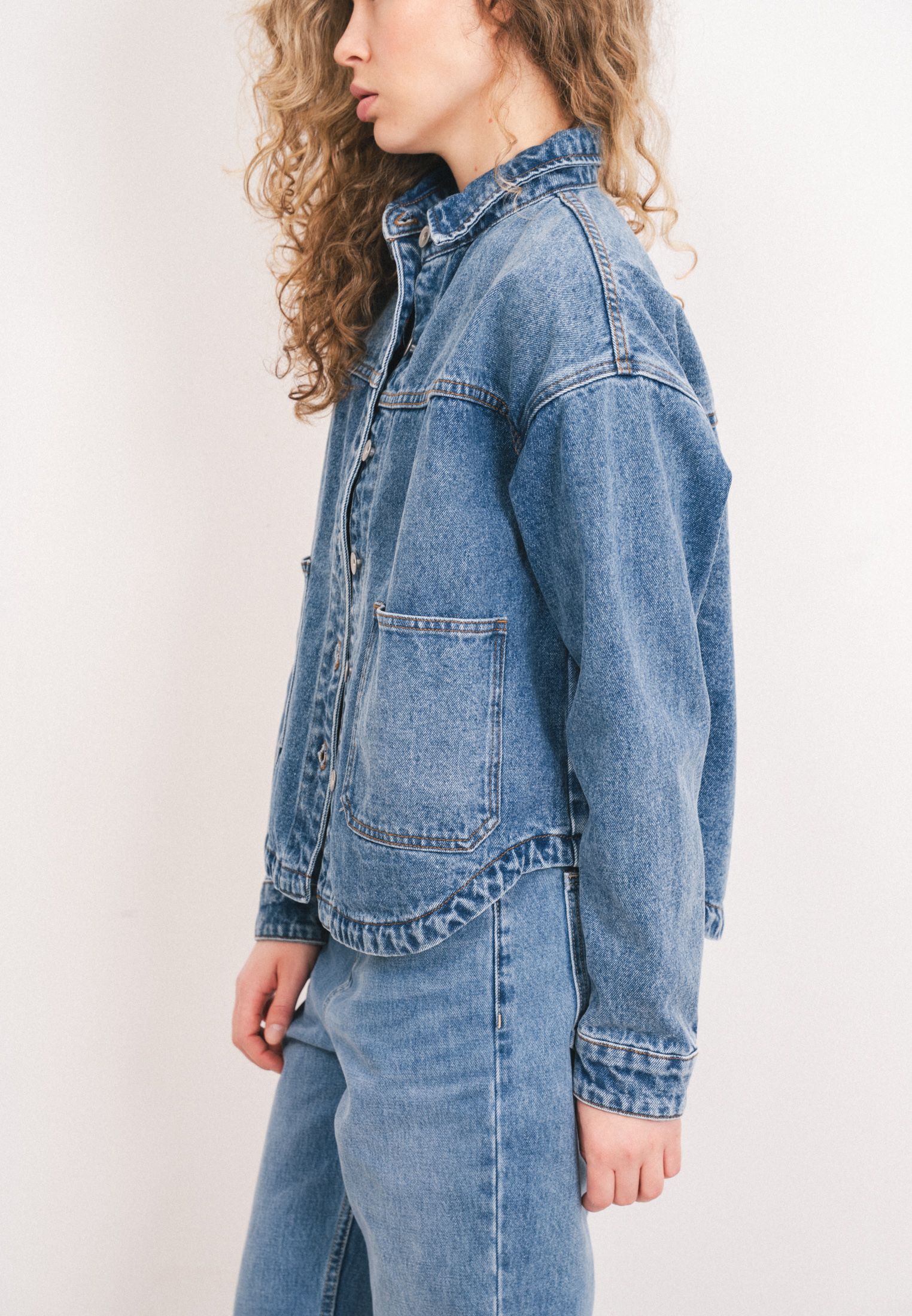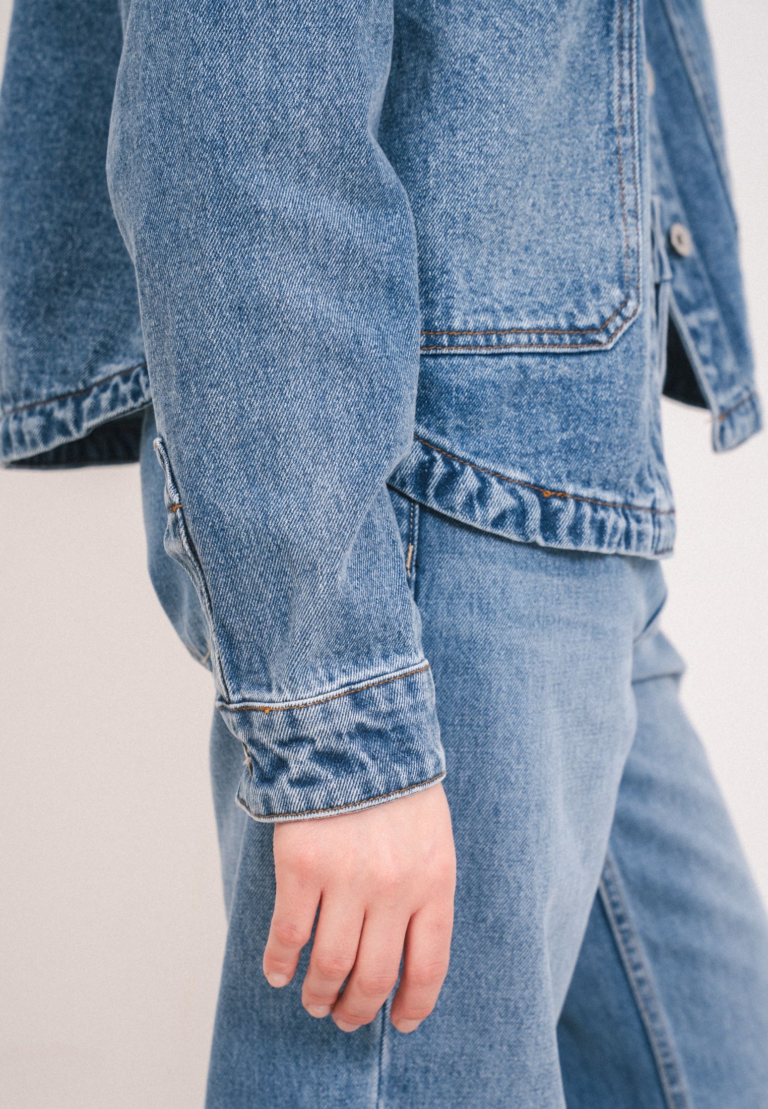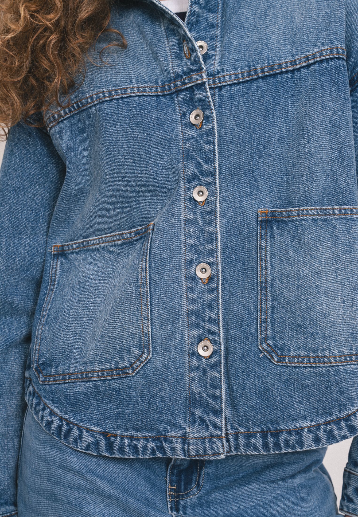 Куртка с отложным воротником, длинными рукавами. Накладные карманы спереди. Застёжка на металлические пуговицы спереди.