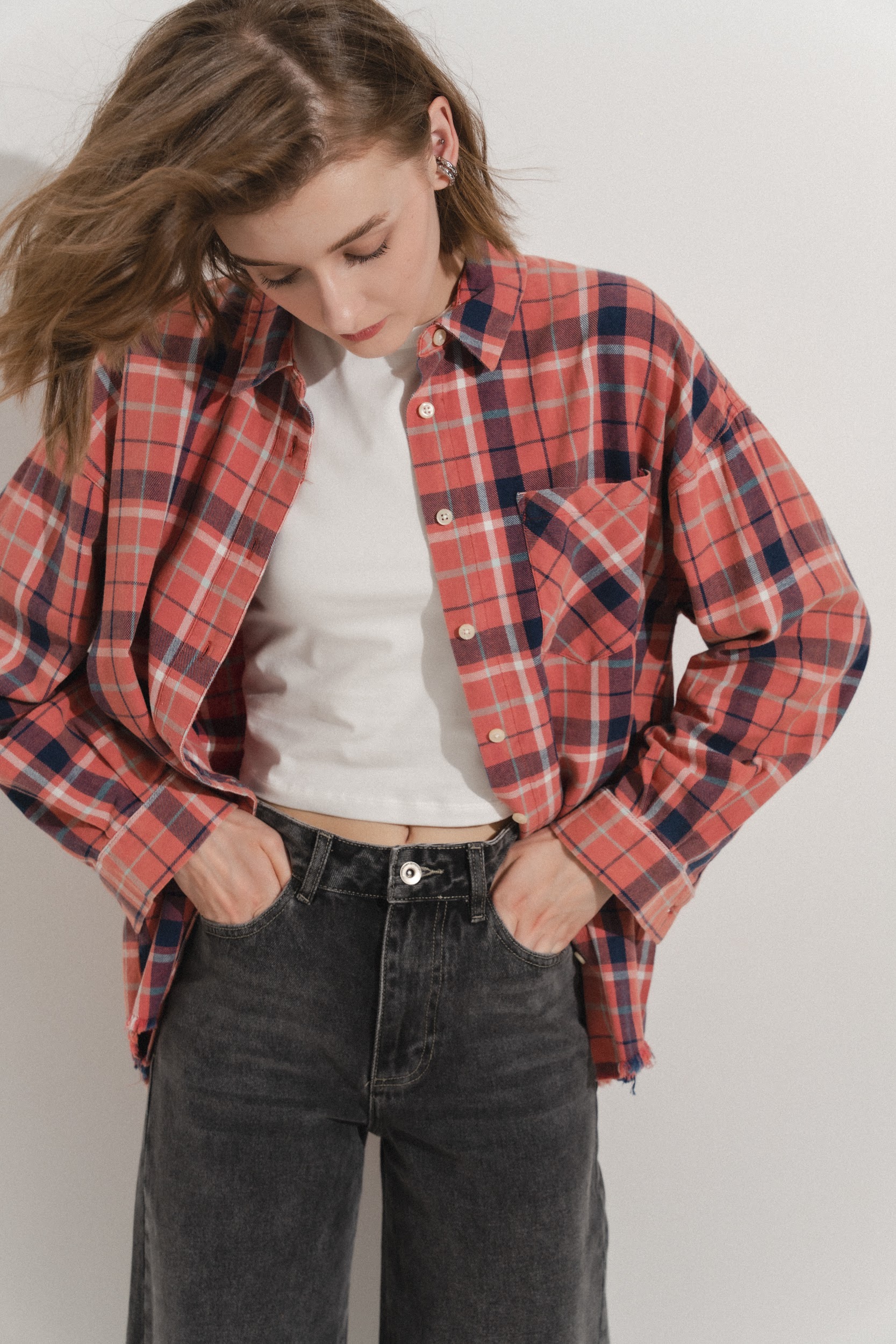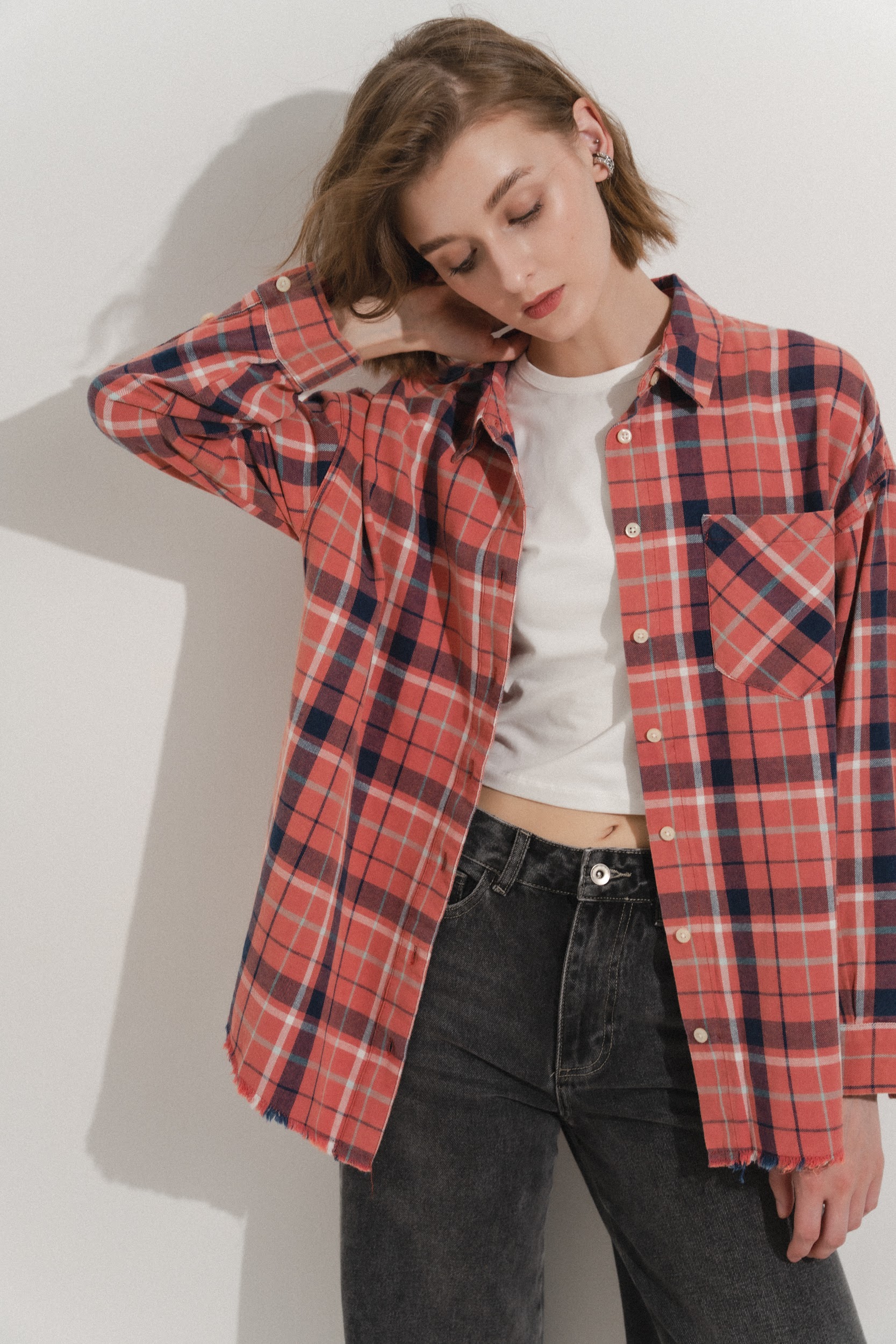 РУБАШКА FADED-EFFECT В КЛЕТКУ ИЗ ХЛОПКА