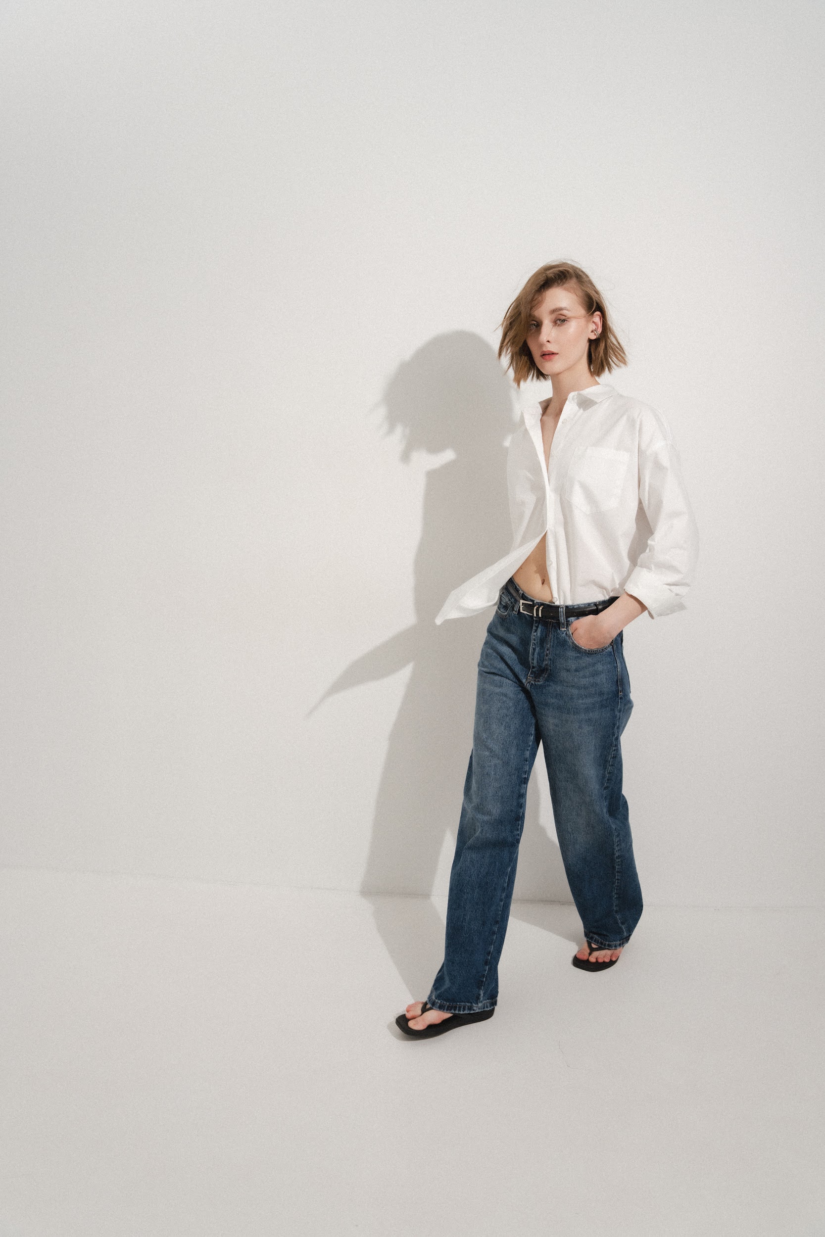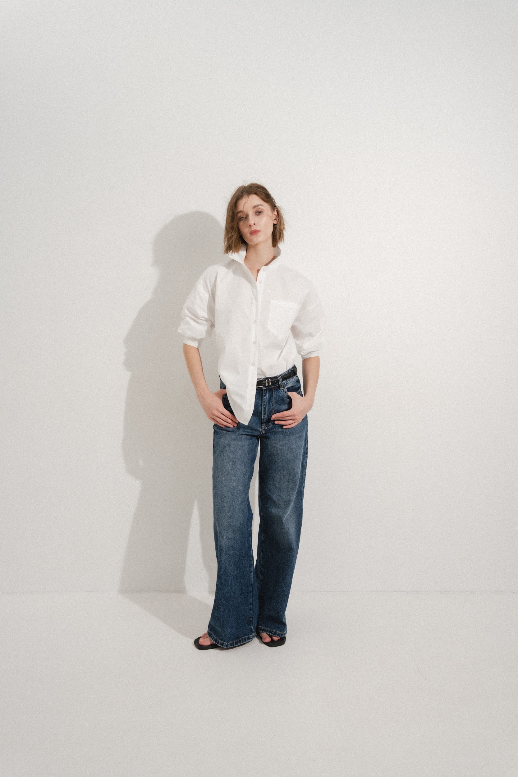 Рубашка прямого кроя из хлопка. Отложной воротник. Длинные рукава с манжетами. Накладной нагрудный карман. Закругленный нижний край. Застежка на пуговицы.