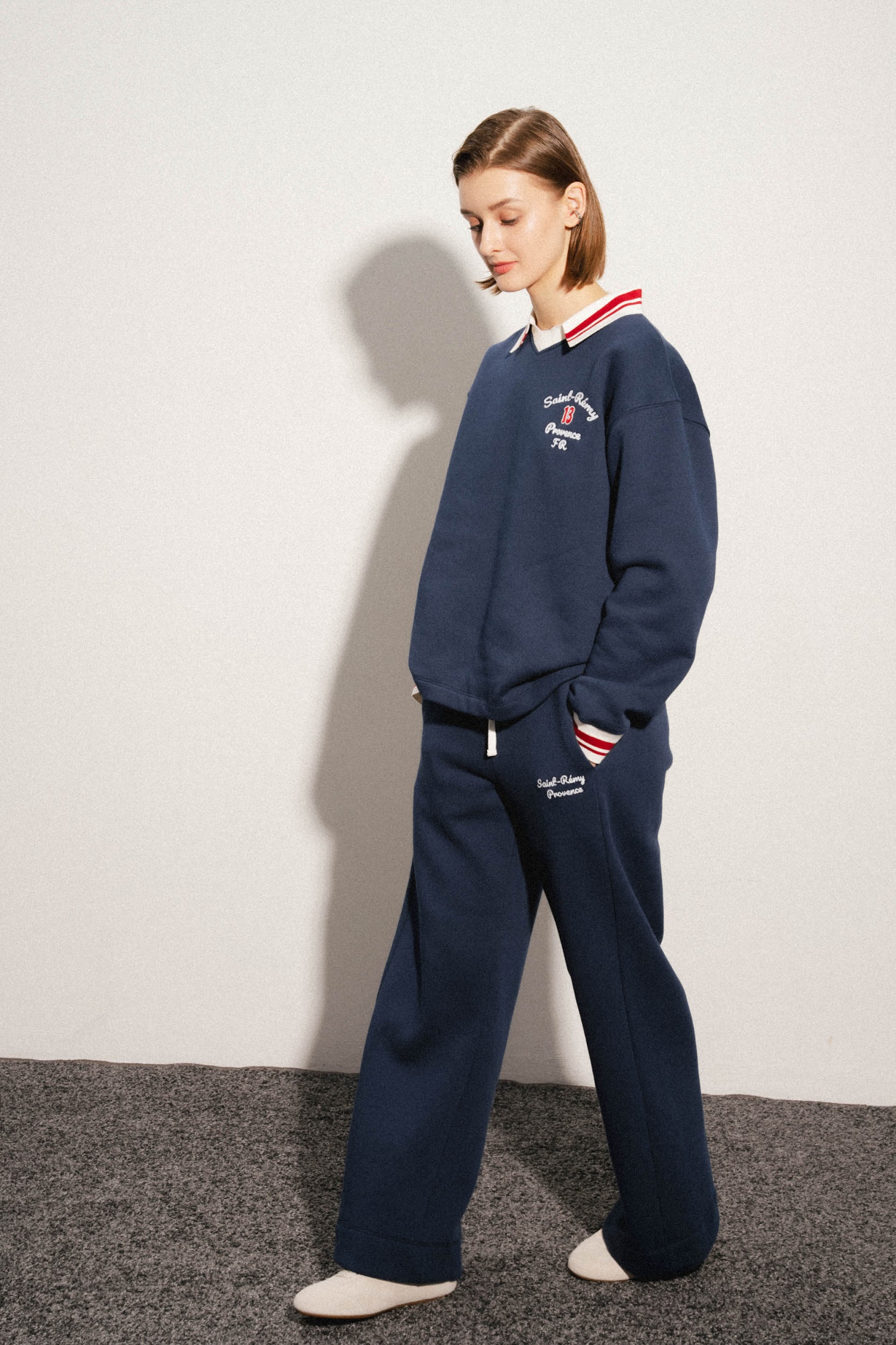Толстовка из хлопка с контрастным отложным воротником. Длинные рукава. Эластичные манжеты. Декоративная вышивка сперди и сзади.