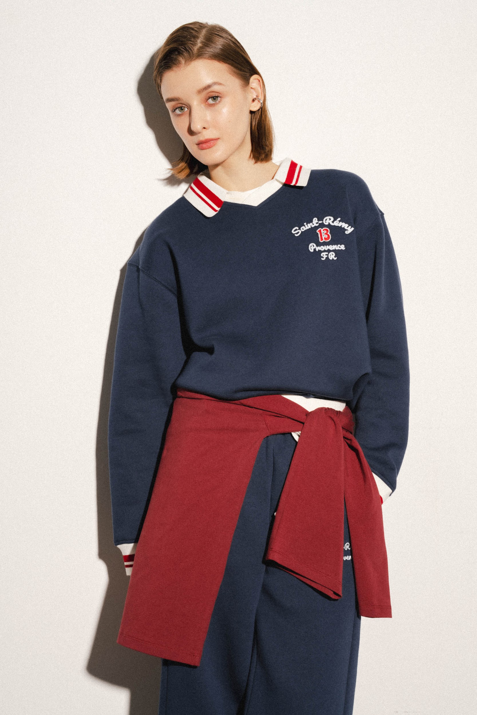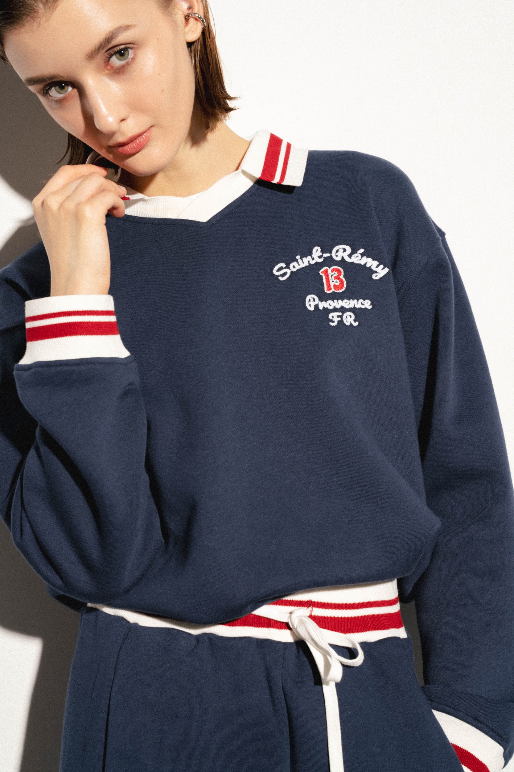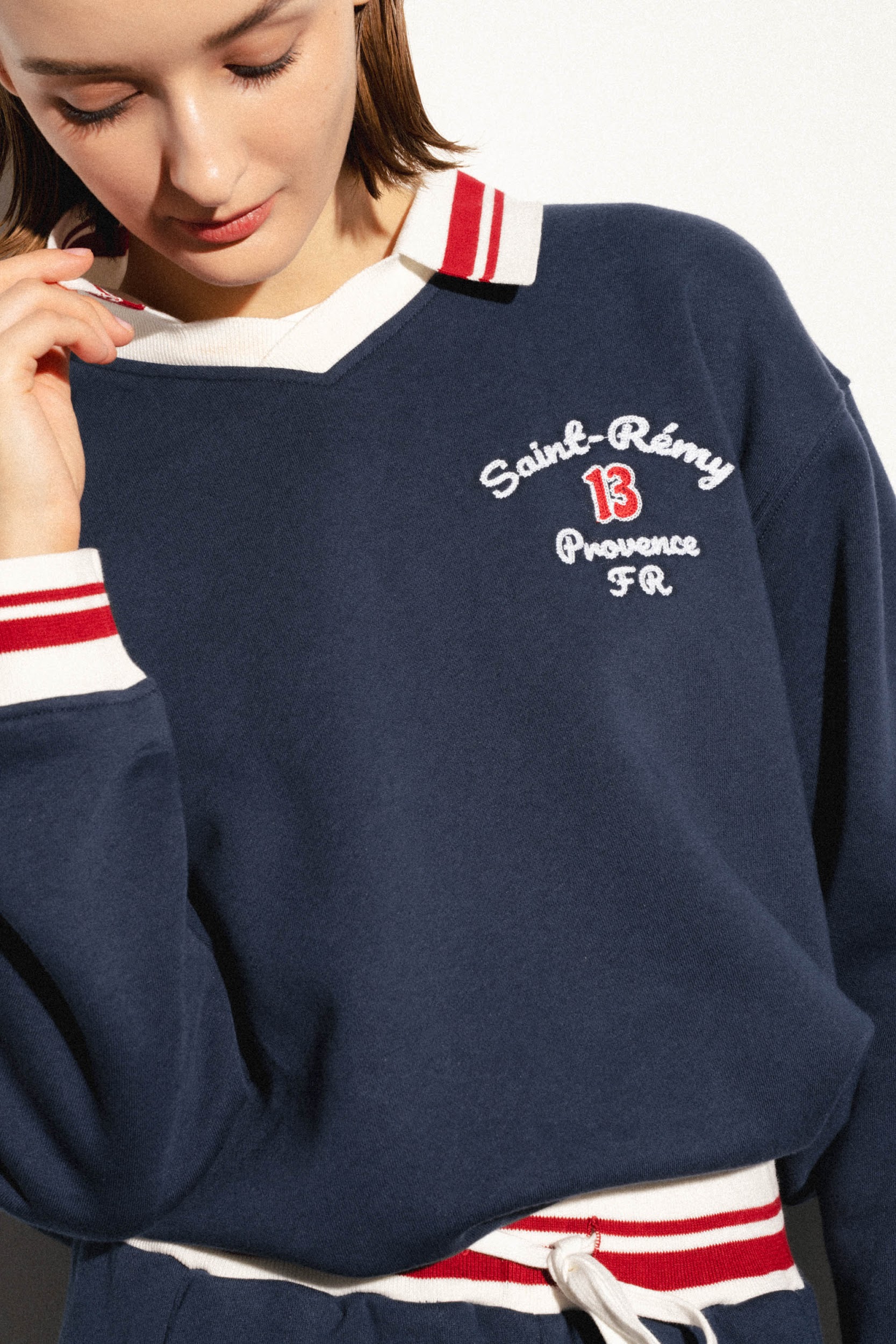Толстовка из хлопка с контрастным отложным воротником. Длинные рукава. Эластичные манжеты. Декоративная вышивка сперди и сзади.