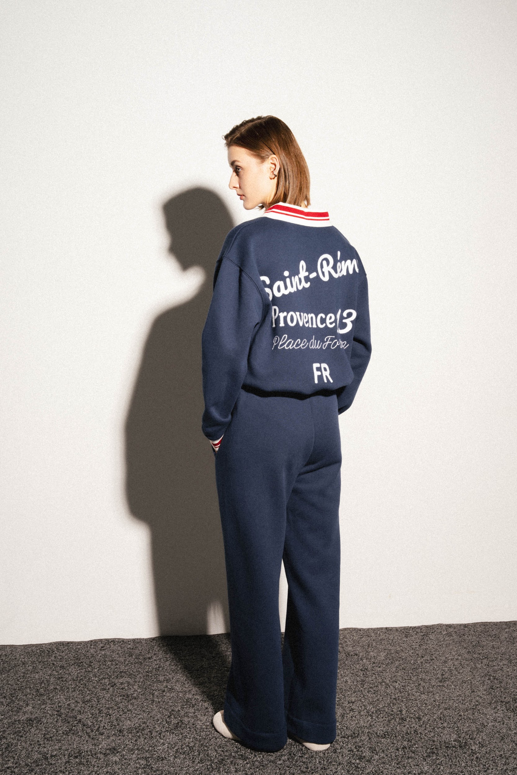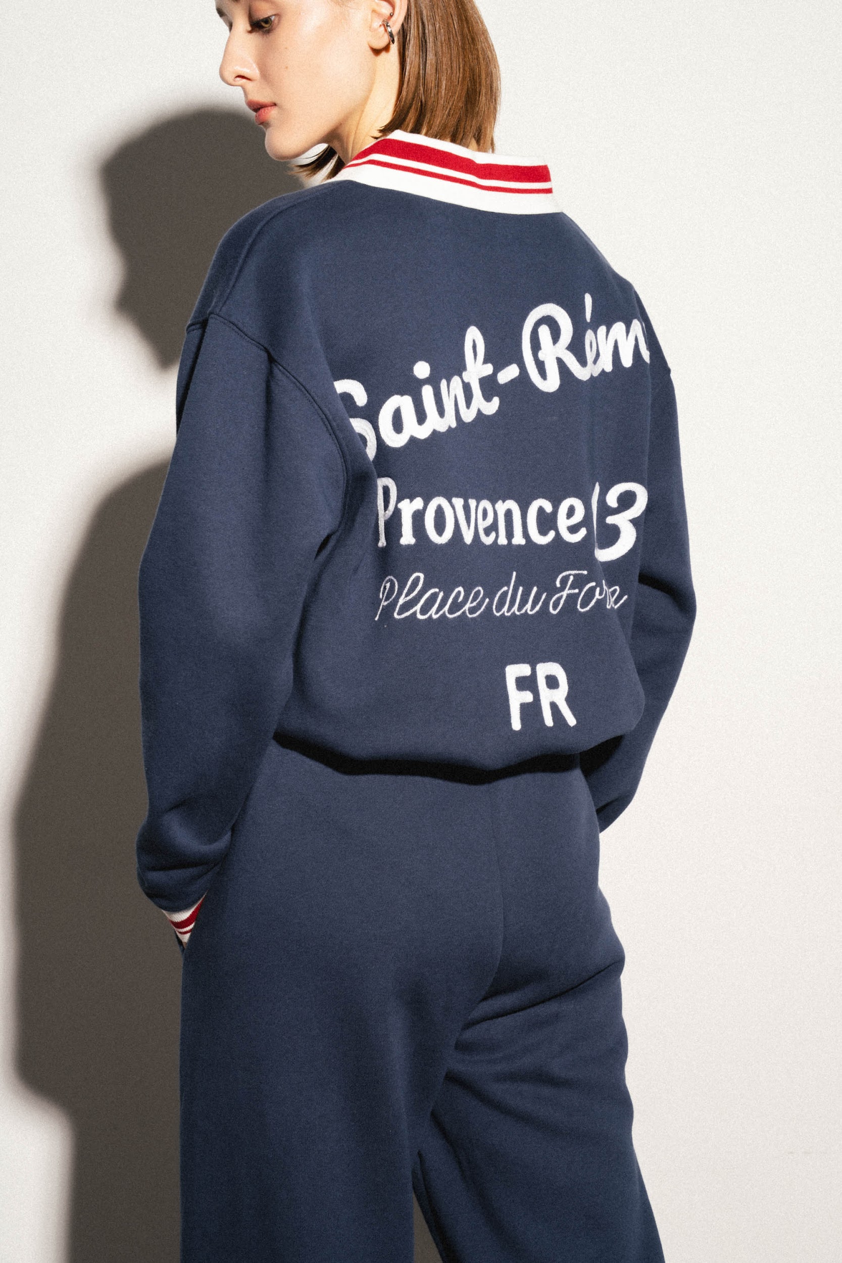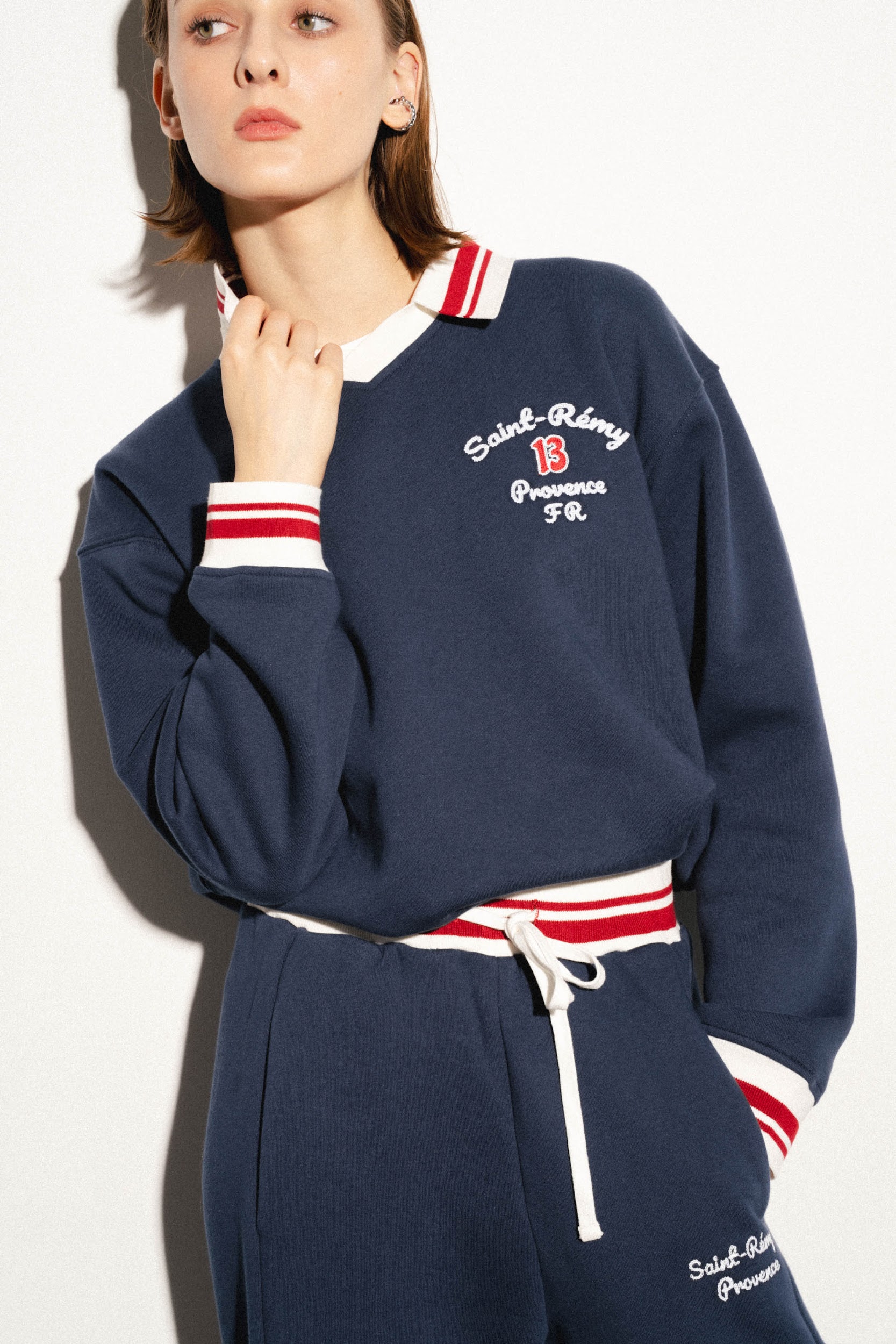 Толстовка из хлопка с контрастным отложным воротником. Длинные рукава. Эластичные манжеты. Декоративная вышивка сперди и сзади.