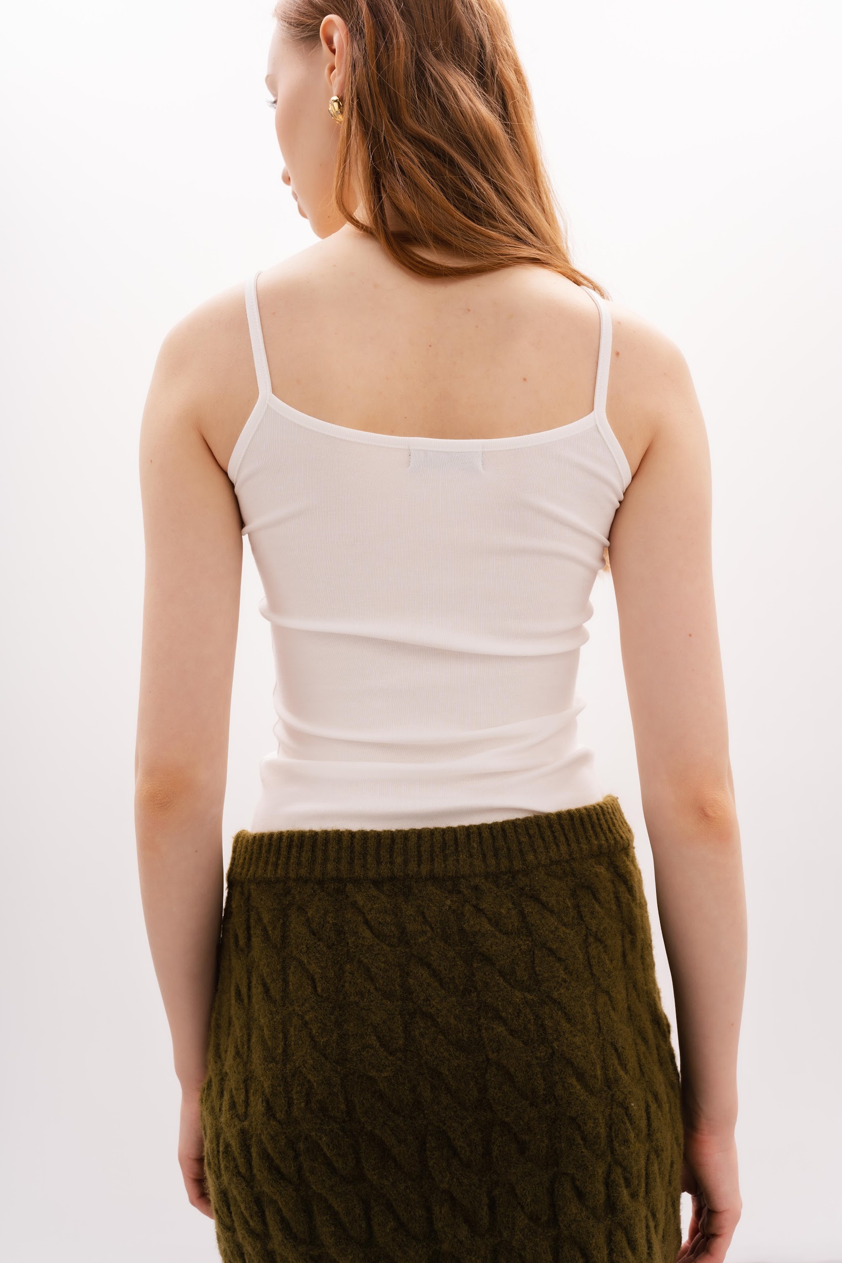 Топ приталенного кроя. С круглым вырезом и бретельками.