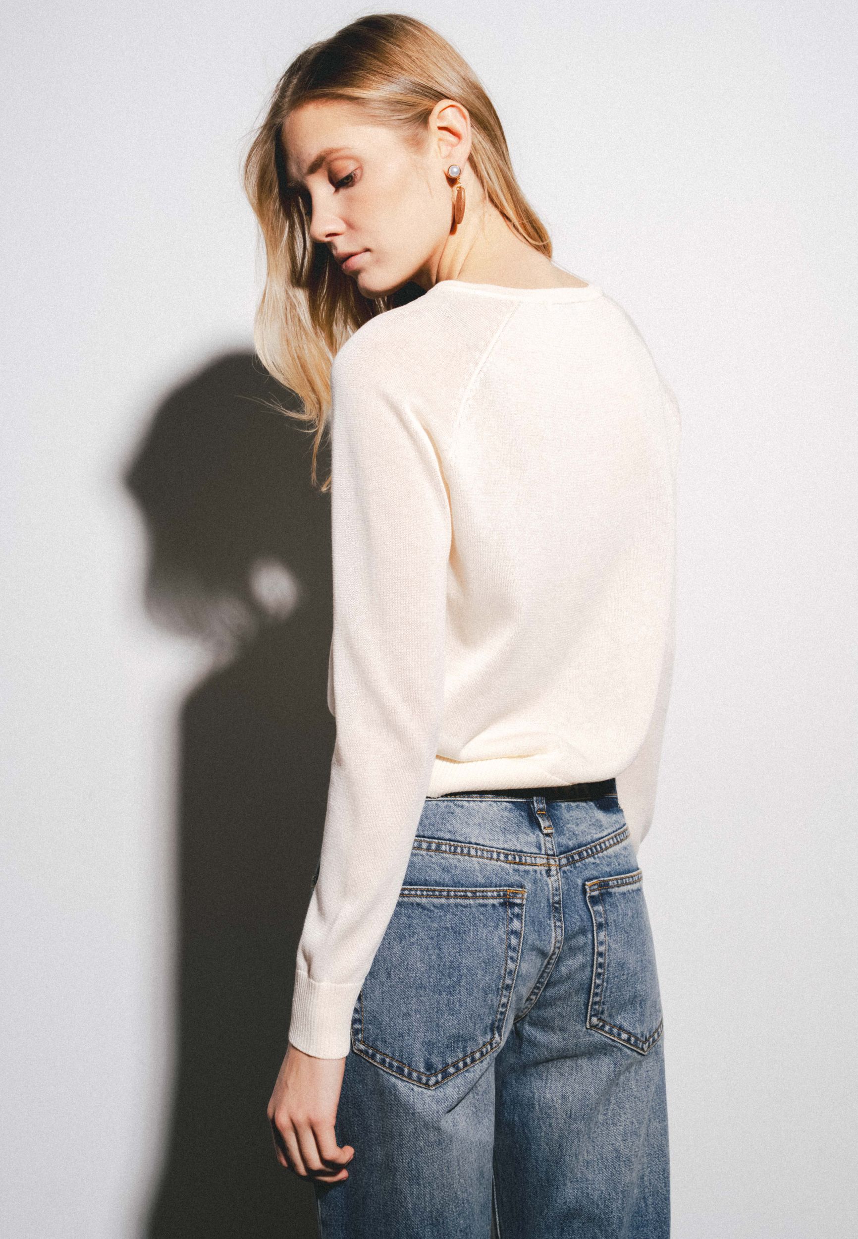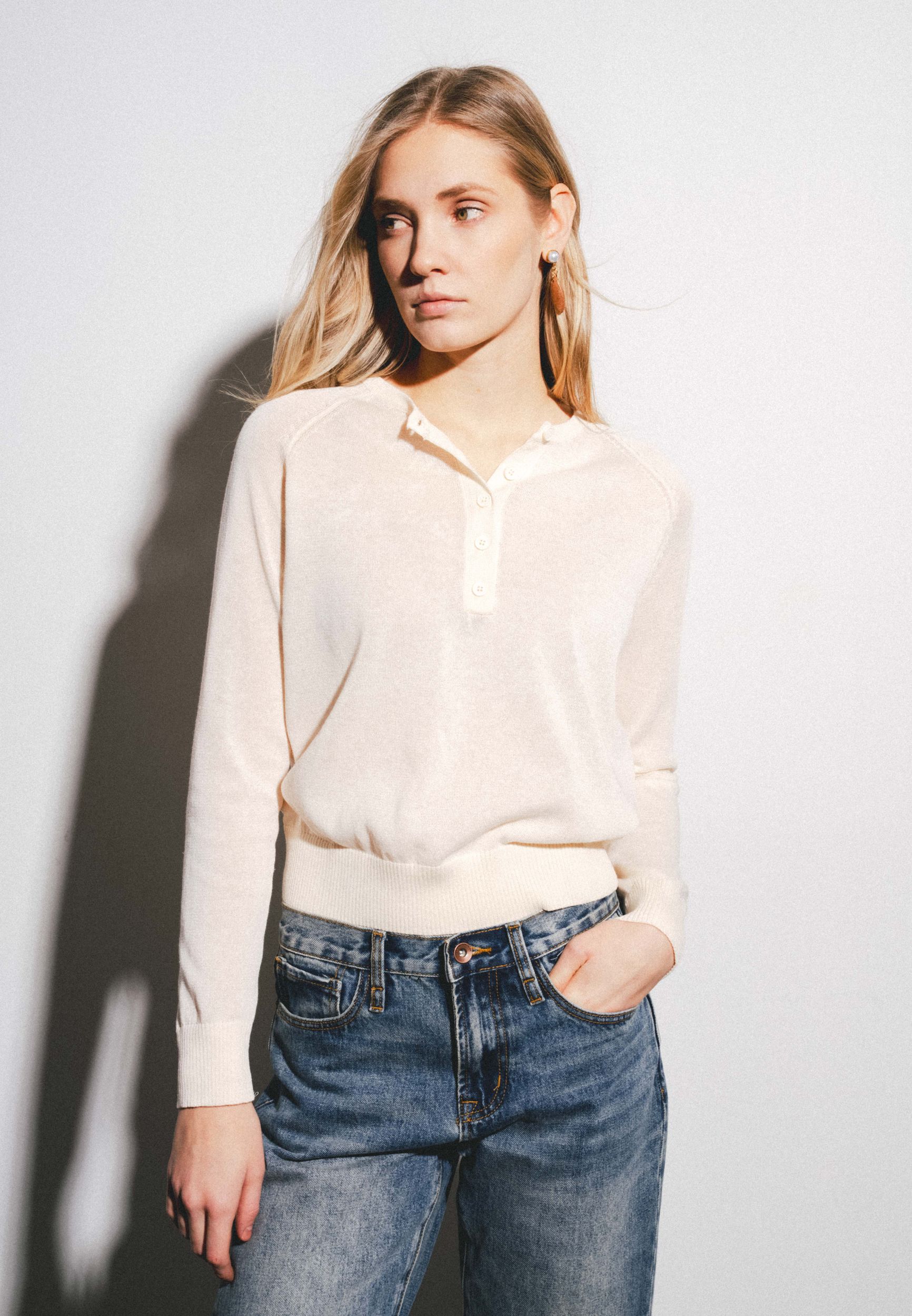 Свитер с круглым вырезом и длинными рукавами. Застёжка на пуговицы спереди. Ребристая отделка. Ткань со льном.
