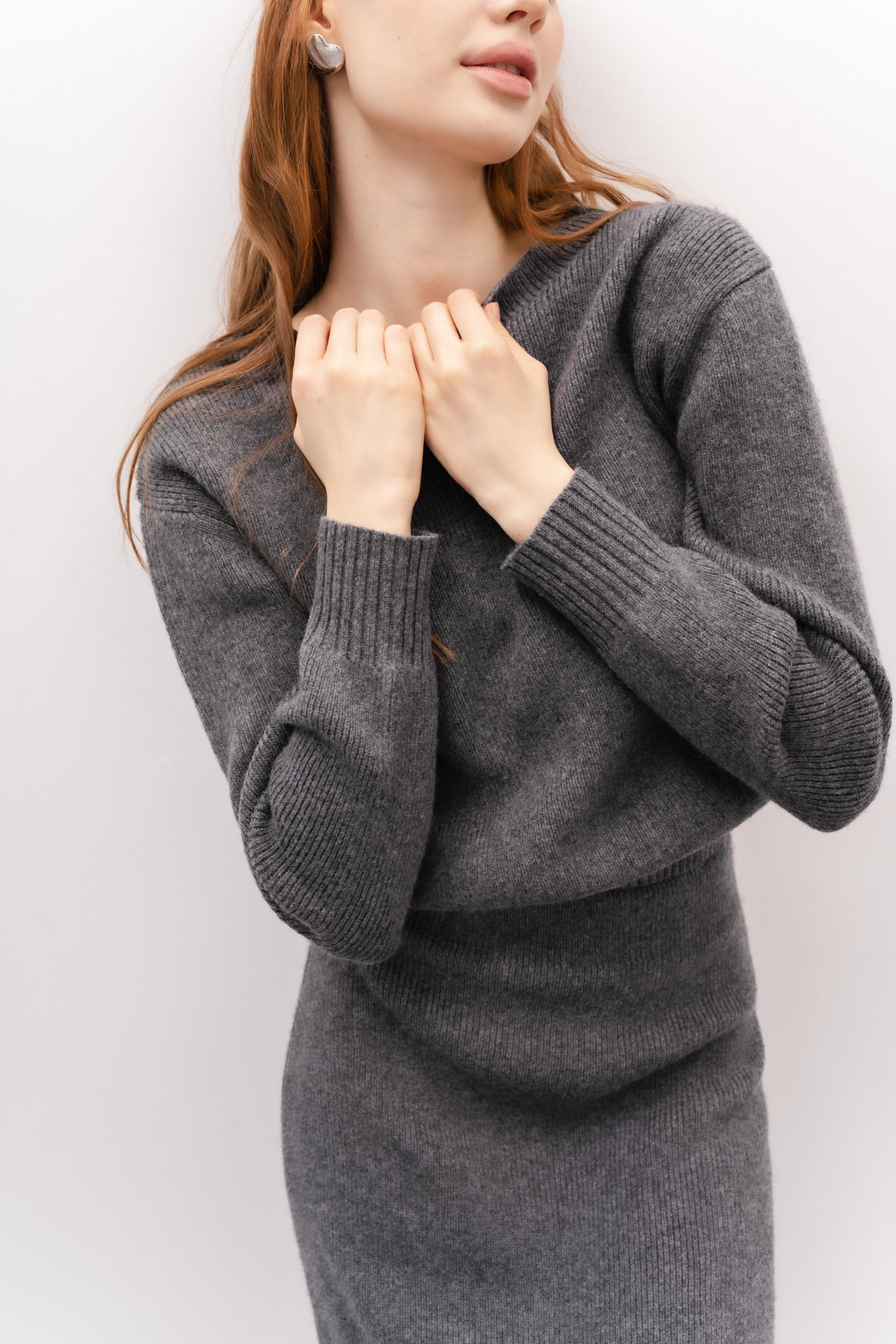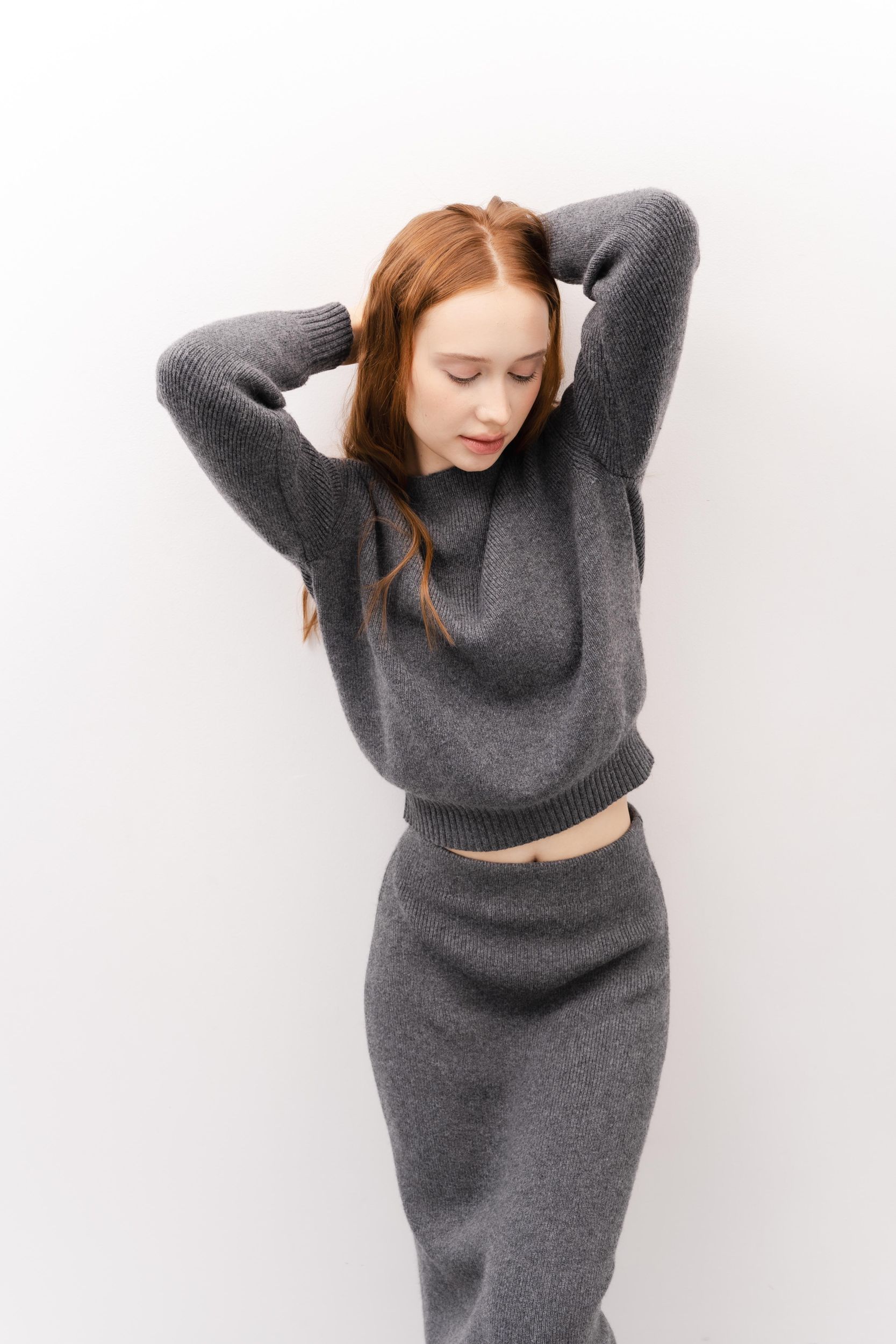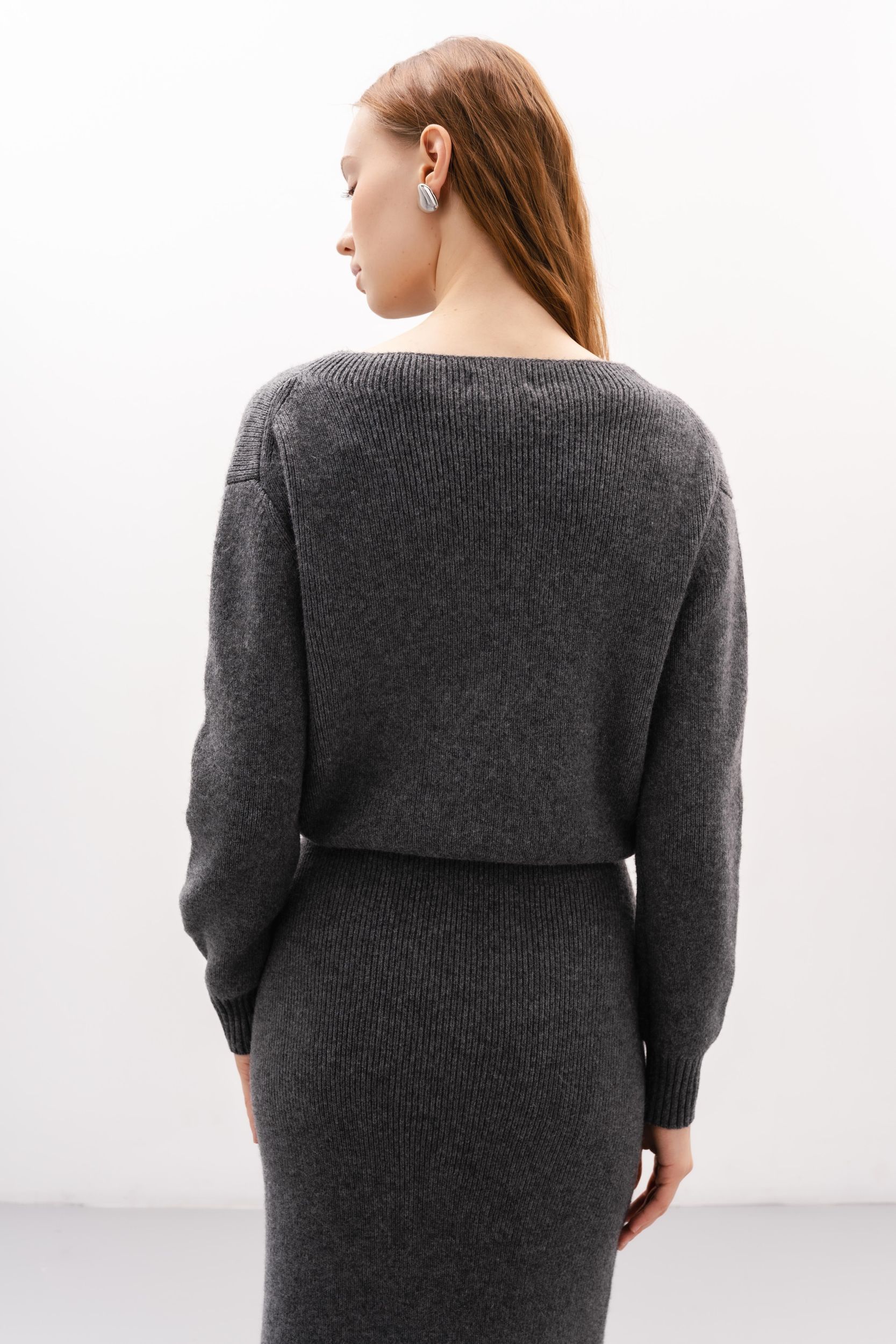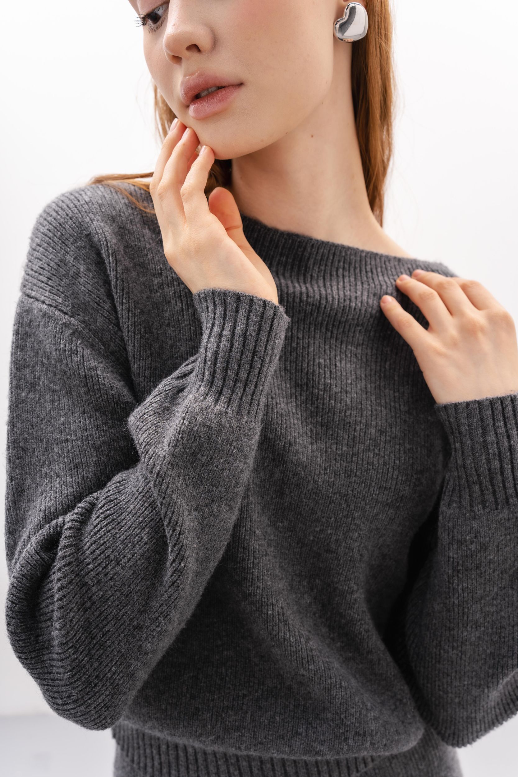 Джемпер прямого кроя из трикотажа с добавлением кашемира и шерсти. Вырез-лодочка. Длинные рукава.