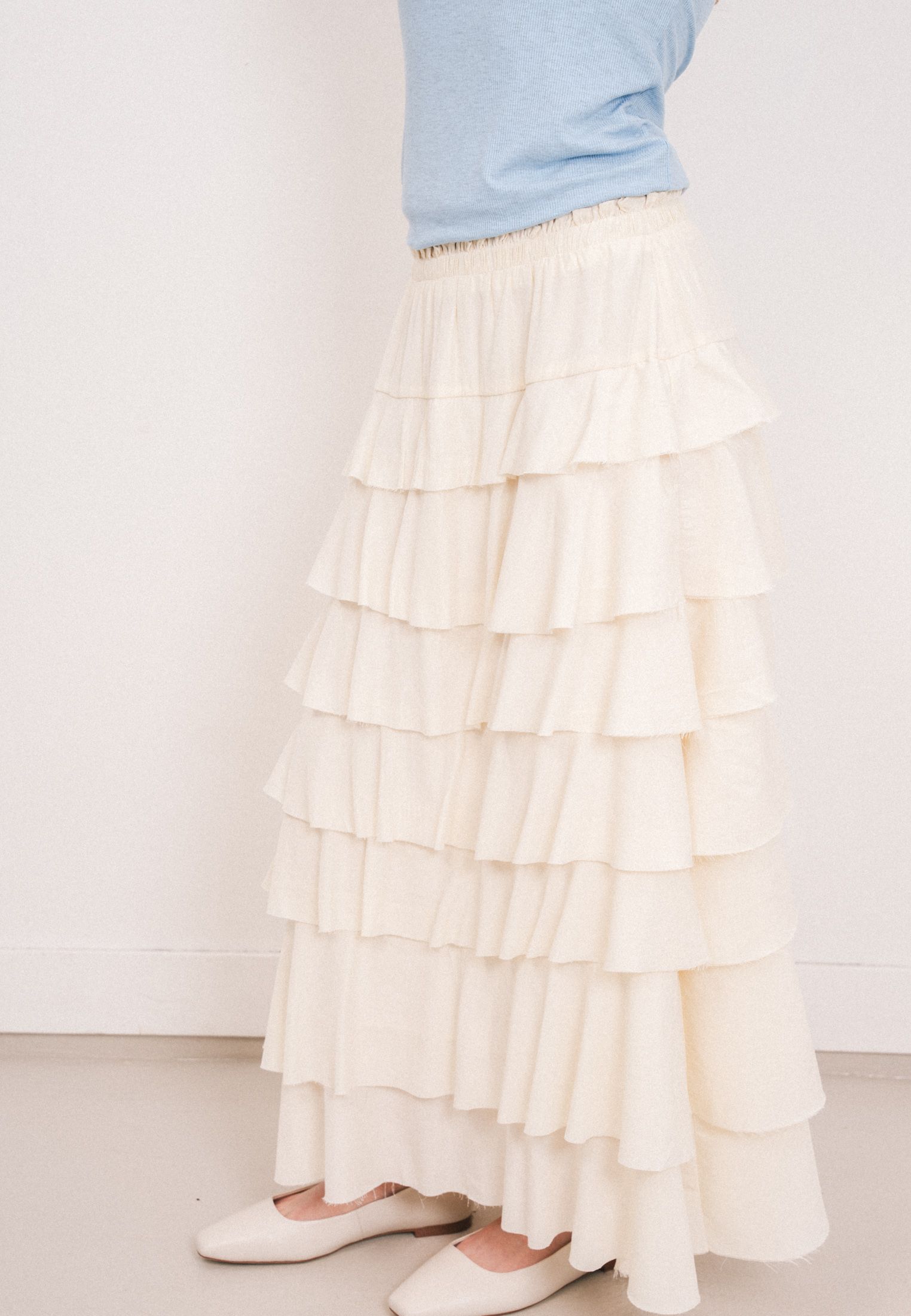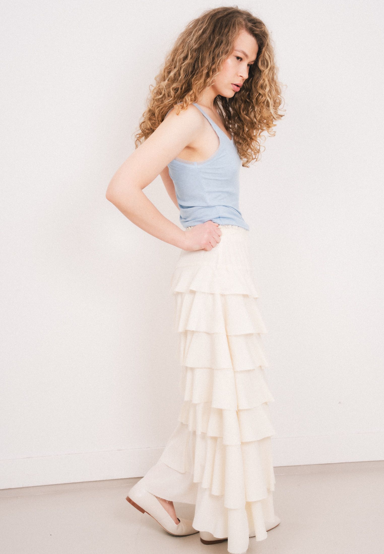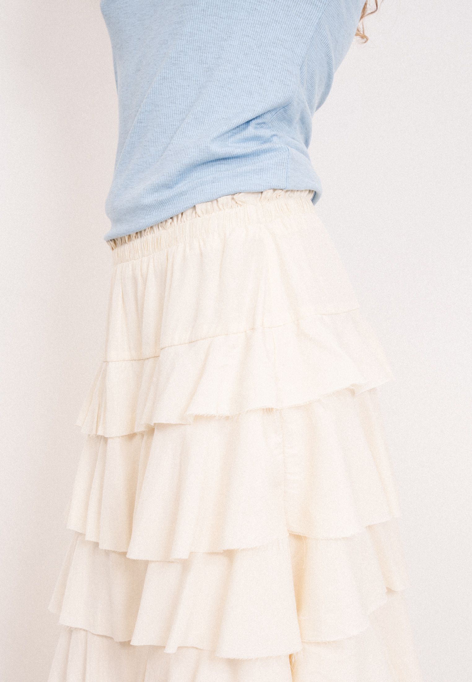 Юбка миди средняя посадка на талии с эластичным поясом. Детали в виде оборок из той же ткани.