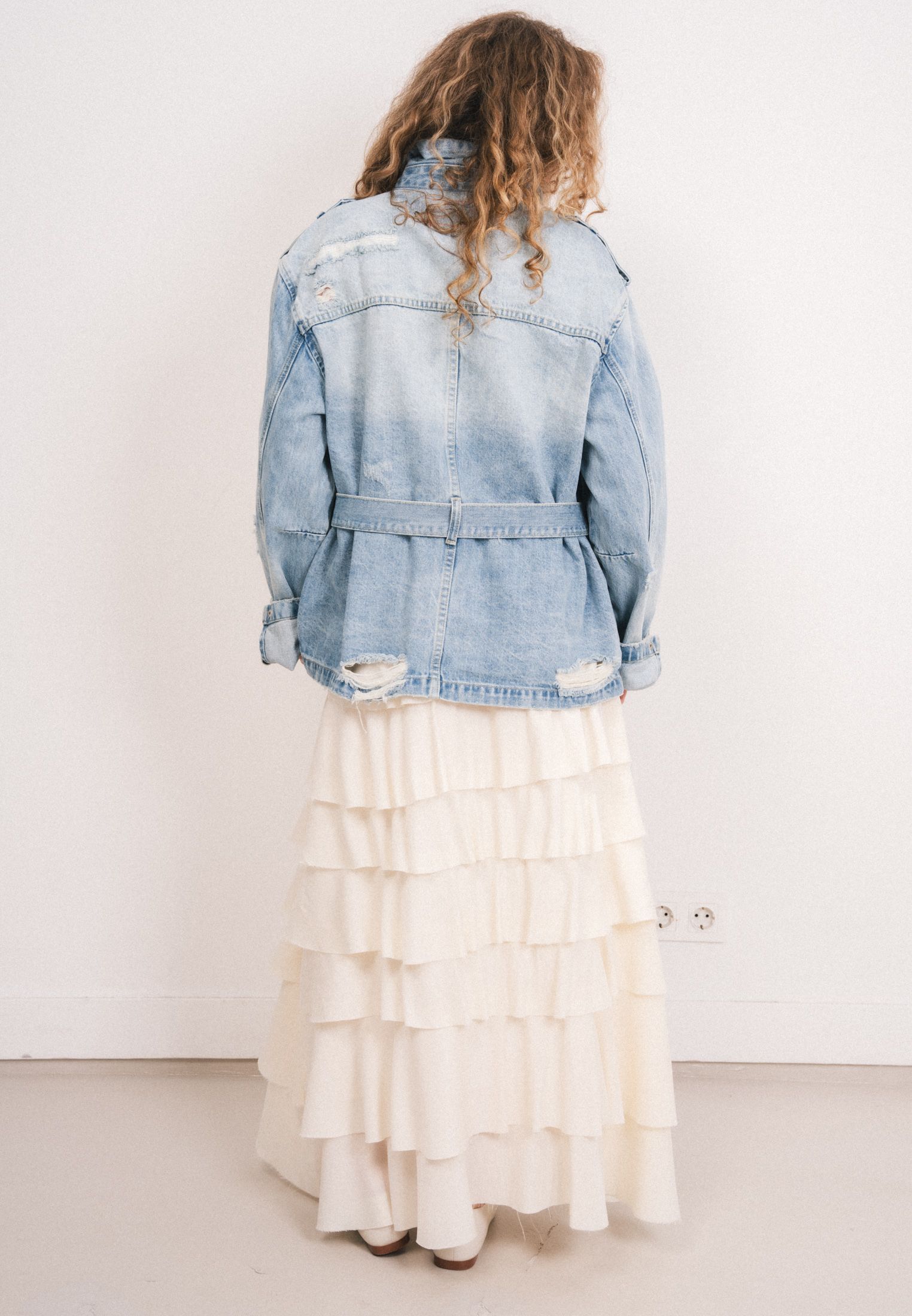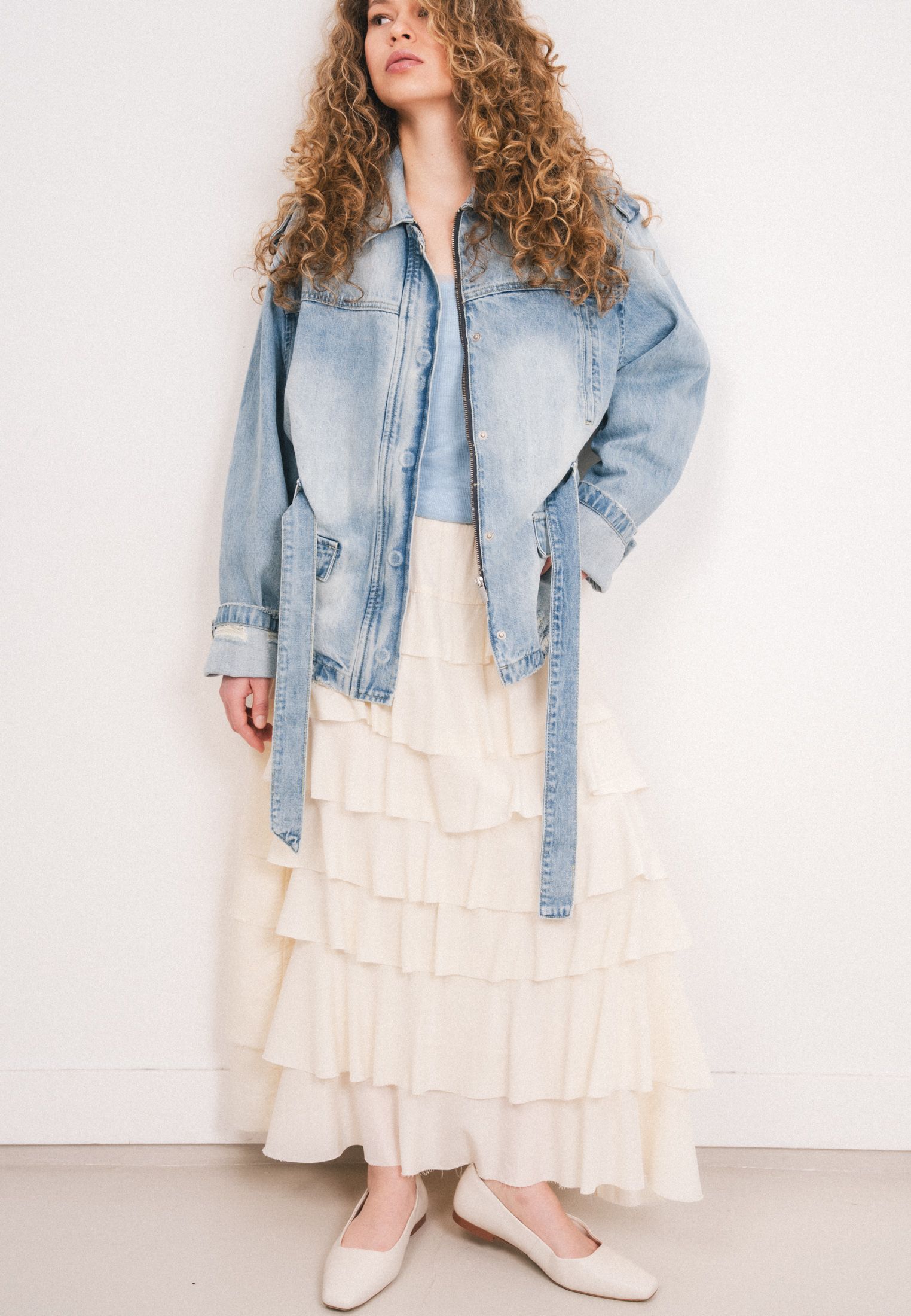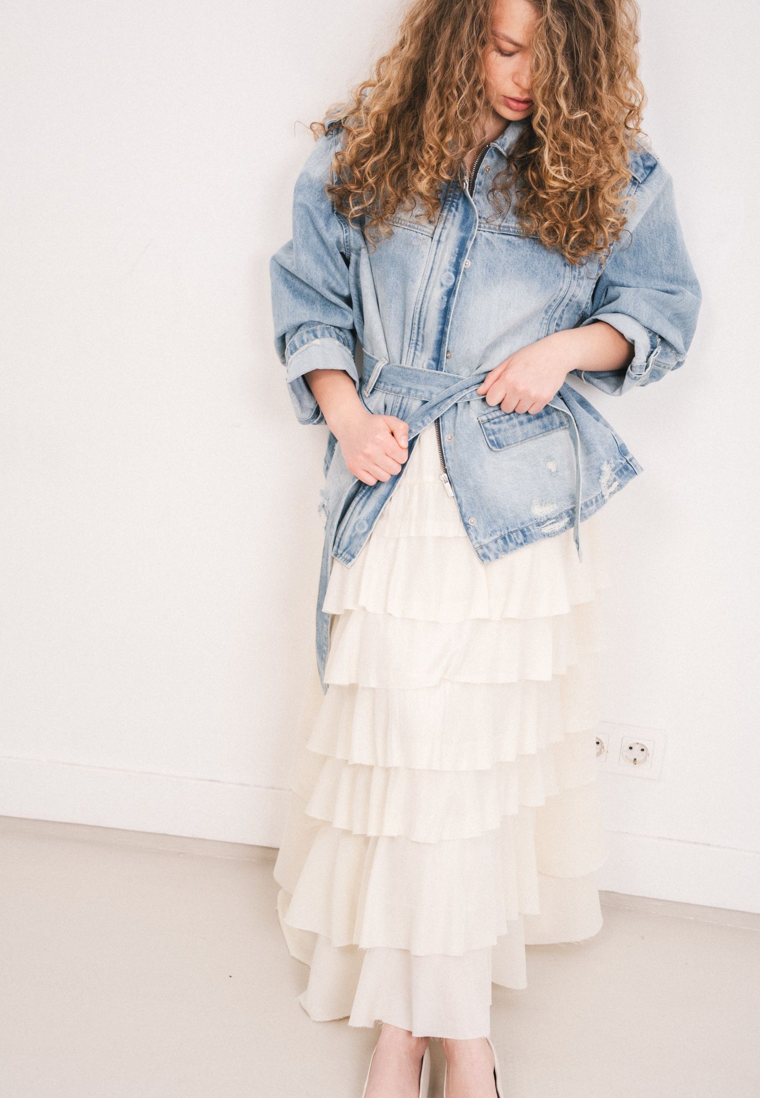Юбка миди средняя посадка на талии с эластичным поясом. Детали в виде оборок из той же ткани.