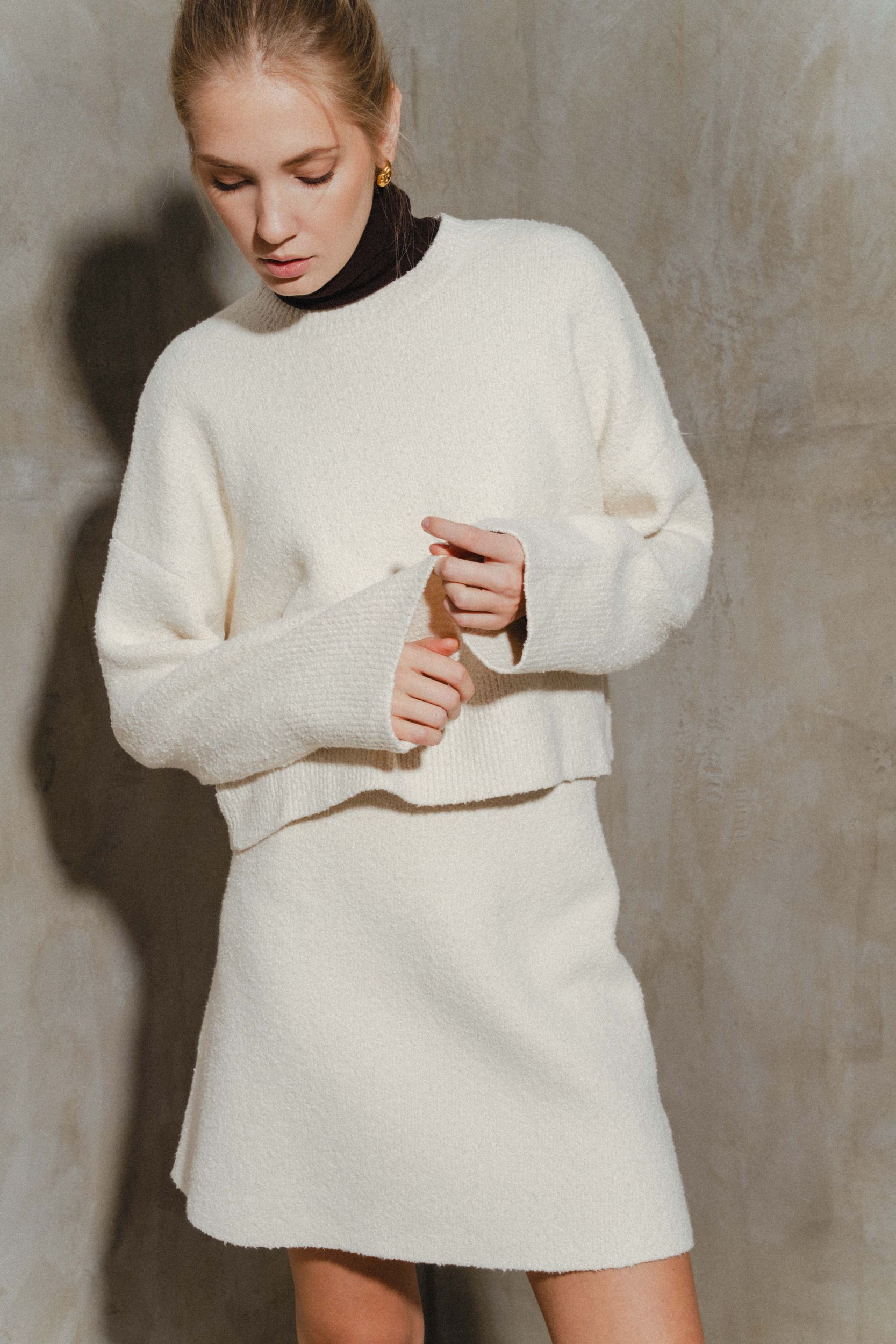 Юбка мини, трапеция. Мягкая пряжа из хлопка